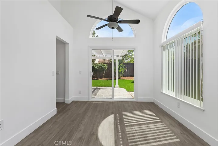 Step inside through elegant double doors into a spacious formal living room with soaring vaulted ceilings and a cozy fireplace. The updated kitchen boasts refinished cabinets, quartz countertops, a stylish breakfast bar, and new appliances, seamlessly connecting to the inviting family room—perfect for entertaining.
