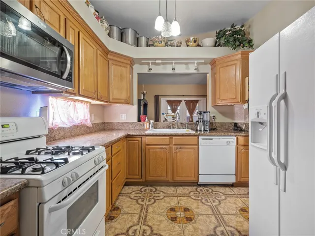 Welcome home to high desert living on a private cul-de-sac! Located on an oversized 10,000 square foot lot you’ll have plenty of room to roam. Front gated yard with walkway to a private courtyard/seating area is a nice space to enjoy year round. Upon entry, a formal living room for entertaining and hallway lead to each of the 4 bedrooms. Combination tile flooring in high traffic areas and carpet is well cared for. Kitchen offers solid surface counters, high ceiling, window for natural light and custom lighting. Directly off the kitchen is a laundry room with plenty of storage. Family room has a custom ceiling fan, corner fireplace and french doors that open to an enclosed patio. Dining area is large enough to accomodate 6 place settings comfortably. Guest bath was recently improved with modern tile and colors. Property is situated with the front door facing east for morning sun. Property is within an hour and half of the California coast, mountain resorts and Nevada’s state line. A must see on your home tour.