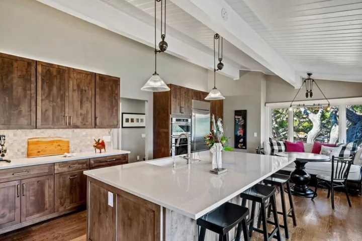 This 4-bedroom, 3.5-bath almost 3200 square foot home offers the perfect blend of desirable location and ultimate privacy. Situated at the end of a secluded cul-de-sac and just west of Carmel Valley Village’s charming restaurants and shops, this property is a rare find. Adding to its appeal this home is located within the highly sought-after Carmel Unified School District. Enjoy stunning views from nearly every room. East and west panoramic views offer both sunrises and sunsets. The layout includes two spacious bedrooms on the main level and two additional bedrooms upstairs. A cook’s kitchen features an expansive island, beautiful stone countertops, and abundant storage, along with a cozy eat-in area. A separate, formal dining area is located just off the living room, and a fireplace in the family room creates a warm and inviting atmosphere. The house is equipped with solar panels; and the property is located in the Water West District offering a potential for a future pool. Outside, there are several gathering areas with beautiful stone patios and professionally landscaped gardens creating a private outdoor sanctuary. Majestic, statuesque oak trees lend a sense of timeless tranquility, making this the perfect place to relax and unwind.