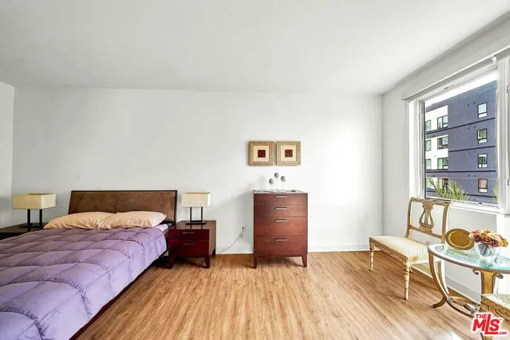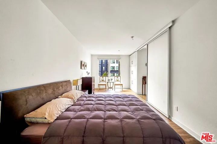 PRIVATE AND CONVENIENT TO ELEVATOR AND TRASH CHUTE ROOM, AND ENTRANCE SPACE, UNIT IS 1 BED 1BATH, UNIT THOUGHTFULLY DESIGNED OPEN FLOOR PLAN RICH DARK HARDWOOD FLOOR, SS APPLIANCES, WASH AND DRYER, FROSTED GLASS BARN DOORS AND WITH WINDOW SHADES SWIMMING POOL AND SPA, GYM WITH SAUNA YOGA STUDIO, 24-HOUR ATTENDANT SECURITY, GATED PARKING TWO CAR PARKING SPACES INCLUDE.