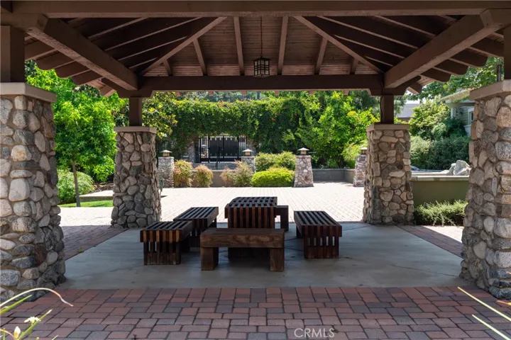 Bright and open layout with large living room, fireplace, dining area, and generous kitchen with breakfast nook. Upstairs: 3 bedrooms, 2.5 baths, and laundry area — including a primary suite with private bath. Attached 2-car garage, charming community gazebo, and easy 210 Freeway access.