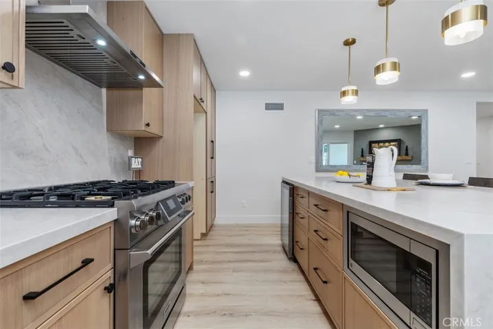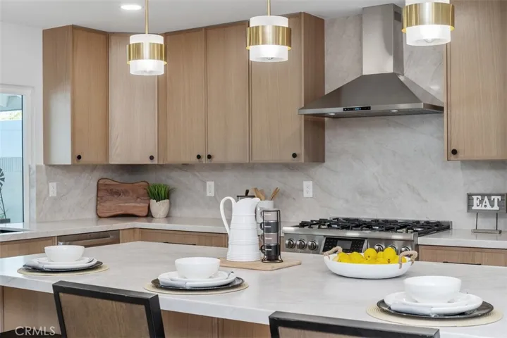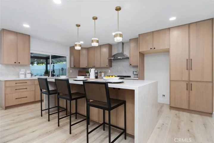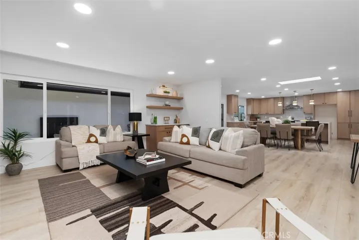 Welcome to 13762 Palace Way — a stunning single-story ranch-style pool home, beautifully reimagined with timeless design and high-end finishes. Perfectly positioned on a quiet cul-de-sac and set on an expansive nearly 10,000 SF flat lot, this residence offers the ultimate blend of comfort, sophistication, and California indoor-outdoor living. Step through the walnut double doors into 3,104 SF of thoughtfully designed living space, featuring 5 bedrooms, 2.5 bathrooms, and 2 versatile BONUS ROOMS ideal for a home office, media lounge, gym, or guest suite. An airy open-concept floor plan is bathed in natural light from abundant windows, sliders, and a skylight. At the heart of the home is the showpiece chef’s kitchen, showcasing a 36” stainless steel gas range with hood, beverage cooler, oversized center island with seating, Taj Mahal quartzite counters and backsplash, sleek White Oak cabinetry, and designer lighting. The kitchen flows seamlessly into the dining room with its cozy gas fireplace and skylight, and continues into the spacious family room — complete with a built-in bar, custom built-ins, floating shelves, quartz tops, an electric fireplace, and recessed TV niche — entertaining has never been easier. The primary suite is a true retreat, featuring elegant pendant lighting, mirrored wardrobe, and direct access to a private courtyard. The spa-inspired en-suite bathroom includes a dual-sink oak vanity, dedicated makeup station, walk-in shower with frameless glass door, and an additional mirrored wardrobe. The secondary bathroom is equally refined with a dual vanity, modern sconce lighting, and tub shower combo. Outdoors, discover your private California oasis — a newly remodeled pool, serene courtyard with fountain and fire pit, and an expansive covered patio perfect for entertaining or relaxing. Additional highlights include a 3-car garage with new epoxy floors and overhead storage, brand new AC system with smart thermostat, full PEX repipe, new dual-pane windows and sliders, new water heater, new garage door opener, and smart video doorbell. Plus, low property taxes, NO HOA, and NO Mello-Roos. This exceptional home is the perfect blend of luxury, function, and lifestyle — and truly must be experienced in person!