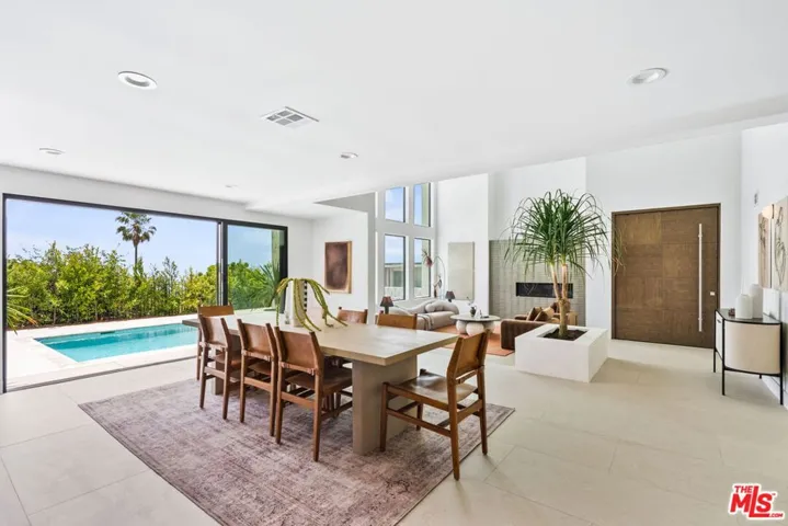 Motivated Seller. Bring offers. Recent $500k price reduction! Thoughtfully reimagined by Devall Design Home, this stunning five-bedroom, five-bathroom residence offers timeless style, natural light, and seamless indoor-outdoor living in the heart of the Hollywood Hills. Every detail has been curated with intention, from the uniquely designed architectural features to the expansive views spanning from Downtown to Catalina Island. The home’s open layout is ideal for entertaining, with multiple living spaces, including one centered around a living tree that brings a touch of nature indoors. A dramatic curved staircase anchors the main living area, complemented by a custom-built bar and designer lighting. The oversized pool, outdoor kitchen, and fireplace create an effortless extension of the interior spaces. The chef’s kitchen is outfitted with a full suite of Miele appliances, a built-in coffee bar and is the heart of the home. Sleek floor-to-ceiling Fleetwood windows and doors flood the home with light. Three of the five oversized bedrooms feature en-suite bathrooms and private outdoor areas. Located just moments from the iconic Sunset Strip and set within a secure community with 24/7 neighborhood patrol, this home offers both tranquility and easy access to dining, entertainment, and culture. A true reflection of the lifestyle in the Hollywood Hills.