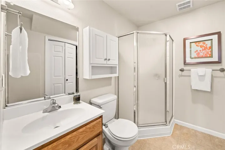 The kitchen sits just off the living area and offers ample counter space for cooking and entertaining. A full bathroom and laundry area with full-size washer/dryer are conveniently located downstairs. Upstairs, you’ll find three bedrooms and a second bathroom featuring a custom-tiled shower. The primary suite includes dual closets, including a generous walk-in.