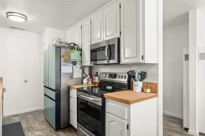 The kitchen has been tastefully remodeled with butcher block countertops, modern appliances, and an undermount sink. Bathrooms feature modern style vanities, stylish tile work, updated fixtures, and lighting. Enjoy year-round comfort with central heating and air, plus solar to help with energy efficiency. A newer 30-year roof (2020) updated exterior paint, and freshly landscaped front yard with automatic irrigation add to the home’s appeal. The oversized garage provides extra space for parking, storage, or hobbies, while the spacious backyard and patio are perfect for gatherings or relaxation.
