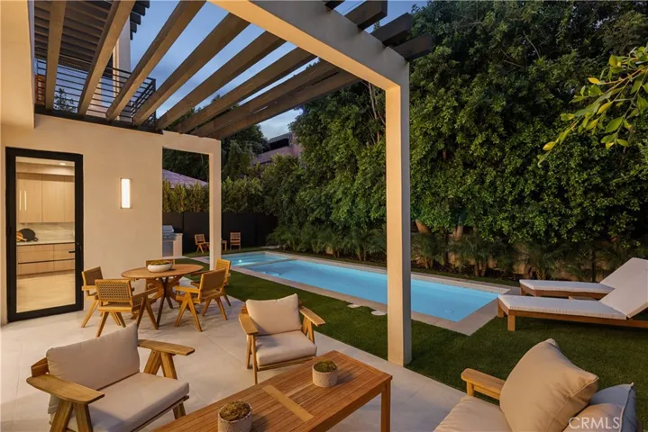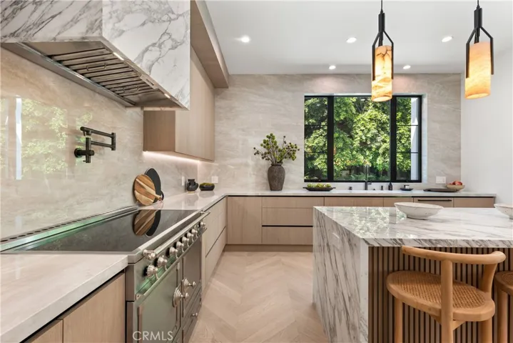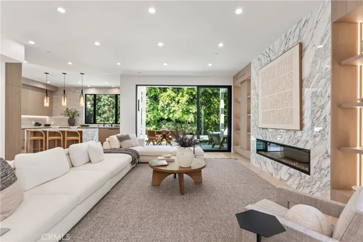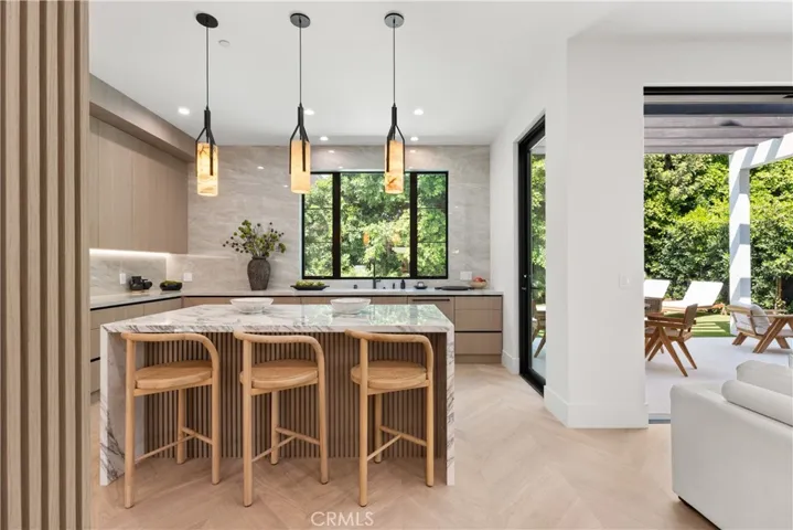 A bold statement in modern luxury living, this brand-new construction home is situated on a quiet tree-lined street in prime Studio City. Showcasing thoughtful design throughout, the bright and airy open-concept floor plan is defined by lofty ceilings and a spacious, flowing layout. At the heart of the home lies every culinary enthusiast’s dream, a designer kitchen equipped with a La Cornue range as its centerpiece, high-end Thermador appliances, a stunning waterfall island and walk-in pantry. The adjacent living room and formal dining area are highlighted by a dramatic fireplace framed by custom built-ins and two oversized sliding glass doors that seamlessly extend your living space outside – ideal for entertaining. Step out to your tranquil backyard retreat and enjoy the best of outdoor living with a sparkling pool/spa, built-in BBQ and plenty of patio space for sun-soaked lounging or al-fresco dining. Upstairs, there are three generously sized ensuite bedrooms and a dedicated laundry room. The primary suite features a private balcony, custom walk-in closet and spa-inspired bathroom, complete with a soaking tub, steam shower and double vanity. Boasting its own private entrance, the attached guest suite offers a living room with a kitchenette and ensuite bedroom with a walk-in closet – perfect for a home office/gym/studio, guests or multigenerational living. Additional highlights include a wine cellar, smart home features (Ring security system, Nest thermostat, Lutron lights), a gated front courtyard and two-car garage. This property is ideally located within the top-rated Carpenter School District and just moments away from Ventura Boulevard’s vibrant shopping and dining scene, the Studio City Farmers Market and so much more.