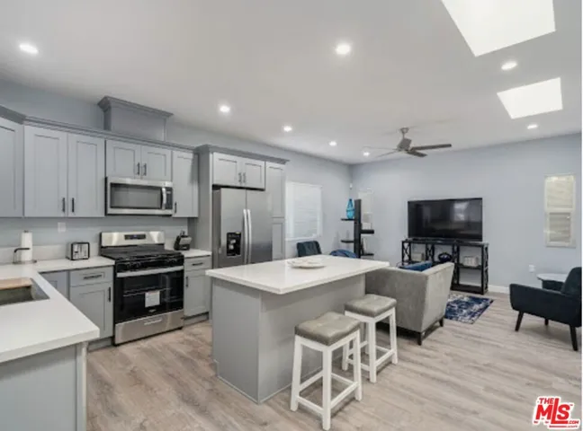 Newly constructed, lovely modern 3+2, 1200 sf single family home in the historic Jefferson Park neighborhood, with USC being less than 10 minutes away. This home boasts high-foot ceilings with skylights, and an open-concept living area as you enter the home. The kitchen has an island with storage and all stainless steel appliances are included. All rooms are painted in a contemporary neutral tone, laminate wood floors throughout. The bedrooms are generously sized, with a Primary bedroom is en-suite. The home is complemented by modern amenities such as central A/C and heating, W/D for added convenience, and an ADT security system. Private backyard area. The property is secured by an electric gate with a private garage and off-street parking for two cars. Section 8 tenants accepted with screening. Property management tenant application screening fee is $50.00.