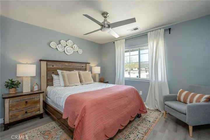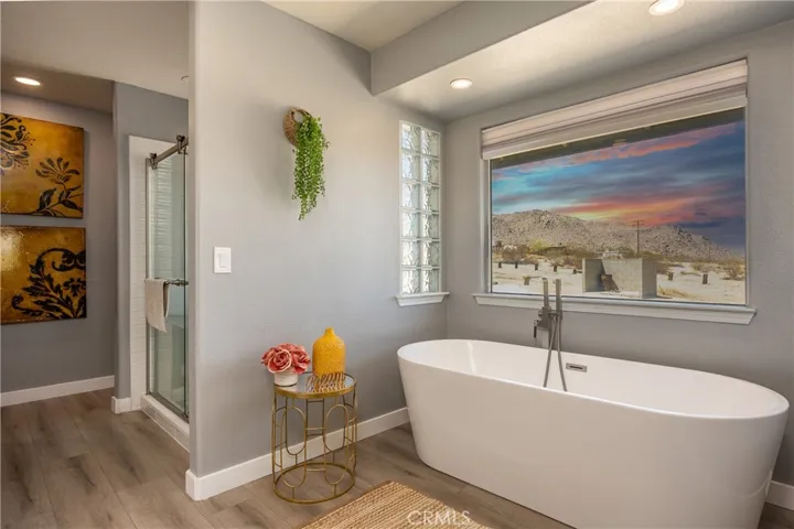 Welcome to your desert oasis in 29 Palms! Perfectly situated in the sought-after Sherman Heights area and just minutes from Joshua Tree National Park, this turnkey 4-bedroom, 2-bathroom home offers 1,663 sq. ft. of stylish living on a beautifully landscaped 1.25-acre lot. Whether you’re searching for a primary residence, weekend escape, or high-performing short-term rental, this property delivers comfort, design, and investment potential in one exceptional package. The open-concept living area, anchored by a cozy fireplace, flows seamlessly into the updated kitchen with custom cabinetry, breakfast bar, built-in microwave, and electric oven, while the dining area’s bay window frames sweeping desert views. The spacious primary suite features French doors to the patio, wood-look laminate flooring, dual vanities, and a luxurious soaking tub set beneath picture windows for stunning mountain vistas. Three guest bedrooms, indoor laundry, ceiling fans, dual-pane windows, central HVAC, and evaporative cooling ensure year-round comfort. Outdoors, mature Joshua trees, palm trees, cacti, and desert flora are arranged among rock riverbeds, walking paths, and multiple shaded seating areas, complemented by a putting green, hot tub, outdoor shower, and built-in BBQ island. The converted 2-car garage, now a game room with insulated doors, adds versatility. Currently operating as a successful STR, the home is offered fully furnished with potential annual gross revenue over $74,000 and cap rates up to 8.5% (self-managed) or 7.0% (professionally managed), making it an ideal choice for those seeking a proven income property, a serene getaway, or a unique desert home in one of the area’s most desirable locations.