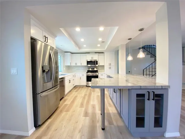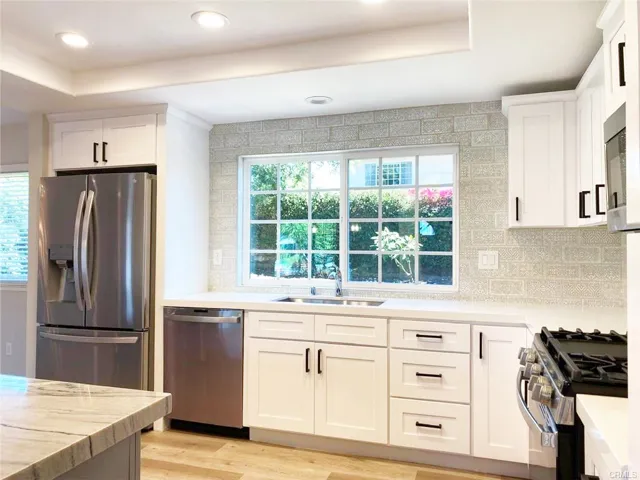 Beautifully updated College Park home just 2 doors from the park! This home boasts 4 bedrooms and huge 5th room that can be used as a bonus room or 5th bedroom. A handsome home from the curb, the home has been updated inside and out. The front yard features low maintenance drought tolerant plants with a large lemon tree. Inside find an open concept layout, with large living room, formal dining area, updated kitchen, breakfast bar, luxury vinyl flooring, and recessed lighting. All appliances have been updated, including a stainless french door refrigerator! Around the corner is a powder room, and comfortable family room with fireplace that opens to a private backyard with a covered patio and fruit trees. Upstairs is a large primary bedroom, remodeled bathroom with dual vanities, walk in shower and freestanding tub. Down the hall are 3 secondary bedrooms, and a huge bonus room/5th bedroom with closet. Washer and dryer included. Lots of shopping nearby and schools are excellent!
