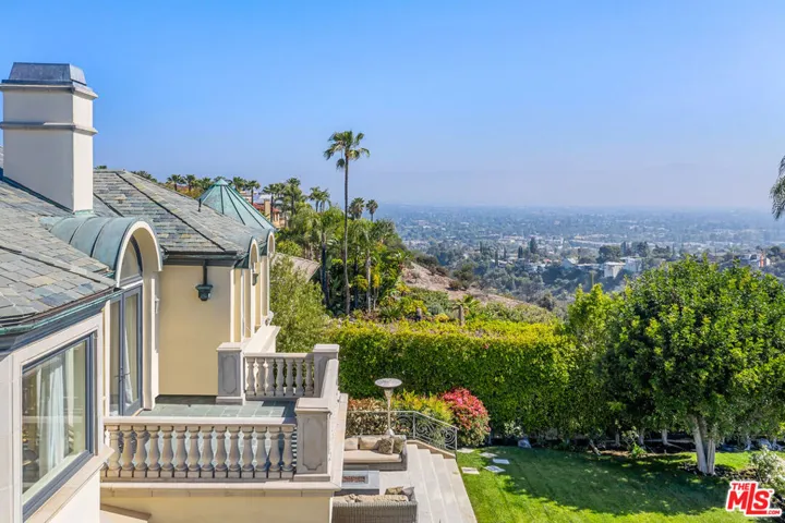 Fully Furnished French Chateau Estate. A spectacular residence set on over a half-acre, boasting the most coveted views in Mulholland Estates, a prestigious 24-hour guard-gated community. Behind grand iron gates, step into refined luxury with a dramatic two-story foyer and sweeping spiral staircase. The home showcases a formal living room with herringbone wood floors, a wood-paneled library, family/media room, formal dining room, and a gourmet kitchen with marble backsplash, Viking appliances, and water filtration system all overlooking manicured grounds, a tranquil fountain, and breathtaking views. The grand primary suite features a step-down sitting area with a double-sided fireplace, a custom marble bath with deep soaking tub, and a spa-like sauna. The private backyard is an entertainer’s paradise with a sparkling pool, spa, multiple lounge areas, and a built-in BBQ. Available for lease fully furnished, offering a turnkey lifestyle in one of the most exclusive communities in Los Angeles.