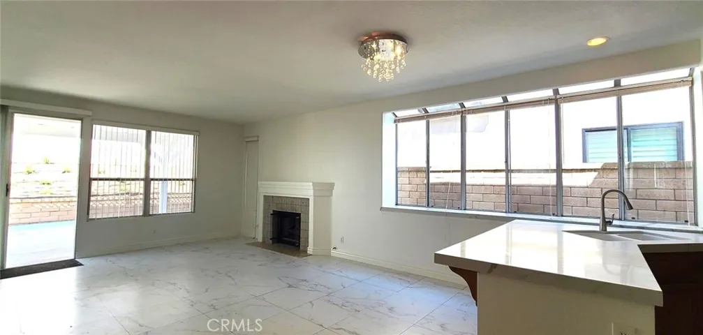 * Living room and formal dining room have high ceilings and plenty of windows to allow for natural light. Quartz counter tops and white tiled back splash compliment the kitchen. Kitchen overlooks the family room with fireplace.