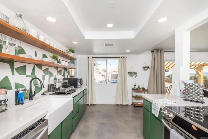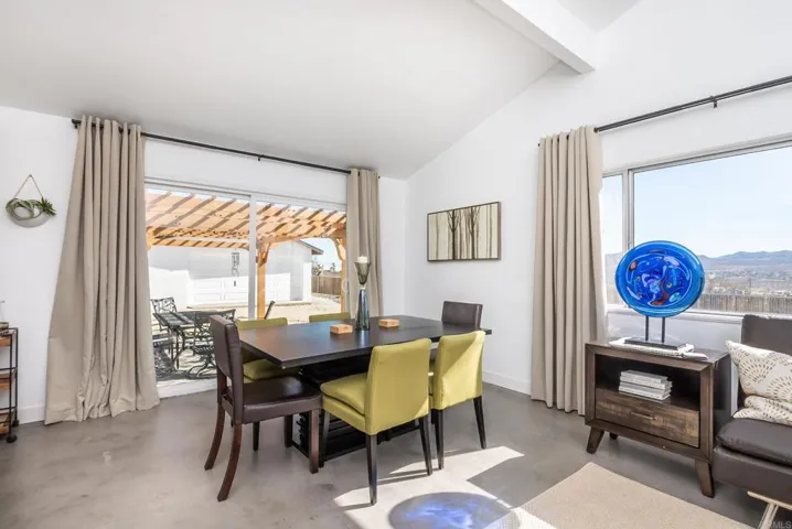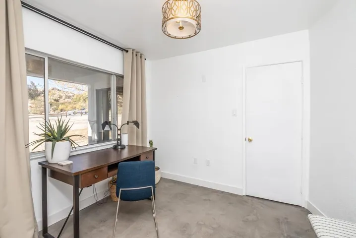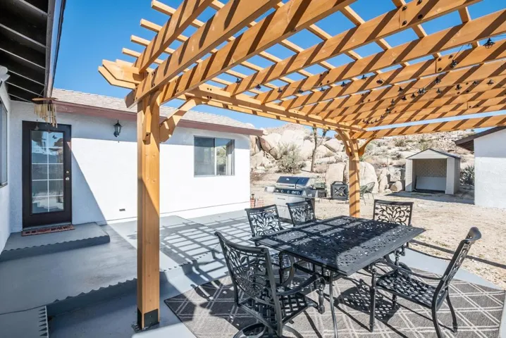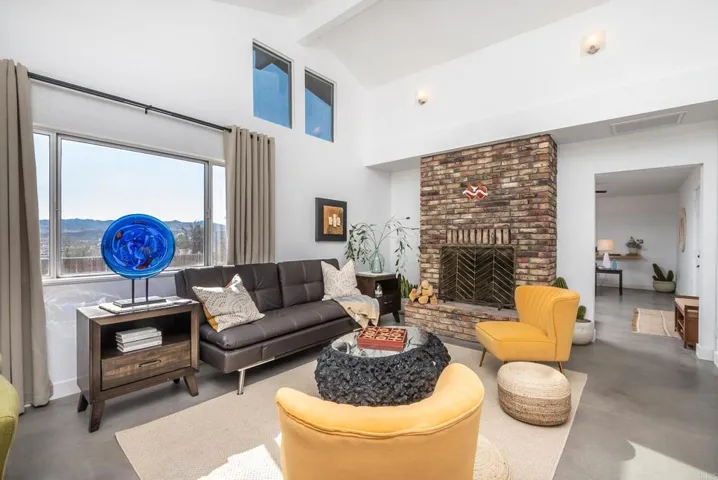 Desert Retreat with Breathtaking Views and Modern Upgrades Welcome to your private desert sanctuary in the heart of Yucca Valley. Nestled among stunning natural boulders, this beautifully remodeled home offers unmatched privacy, dramatic scenery, and endless opportunities for relaxation and stargazing. Just a short 10-minute drive to Joshua Tree National Park, this property combines modern comfort with the magic of desert living. Step inside to find a thoughtfully upgraded interior featuring a brand-new roof, new AC, fresh paint, new flooring, countertops, refrigerator, and dishwasher. The open living room, anchored by a cozy fireplace, flows seamlessly into the kitchen, creating an inviting space for gathering. A separate den is perfect as a theater room or flexible living space, while a dedicated office complements the three spacious bedrooms. The primary suite boasts a large picture window framing the boulder-studded backyard and a spa-like bathroom with a clawfoot soaking tub. An additional full bathroom with tub and shower continues the modern design. Outdoors, tranquility awaits. The expansive backyard—completely private and unseen by neighbors—features awe-inspiring boulder formations, twinkling city-light views, and a hot tub tucked among the rocks for the ultimate stargazing experience. Whether you’re enjoying desert sunsets, relaxing under the night sky, or hosting friends, this setting is one of a kind. Additional highlights include a detached two-car garage and a sliding glass door that opens to the serene backyard retreat. This is more than a home—it’s an experience. Don’t miss your chance to own a rare, fully upgraded desert escape with iconic Yucca Valley views.