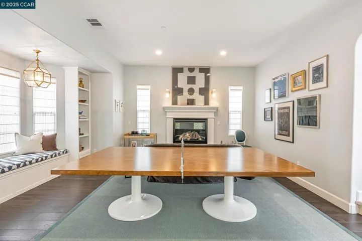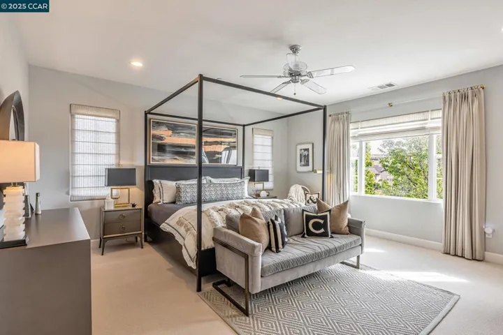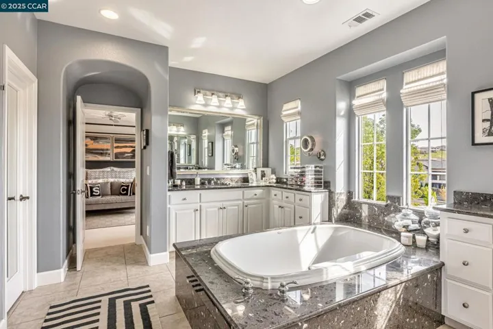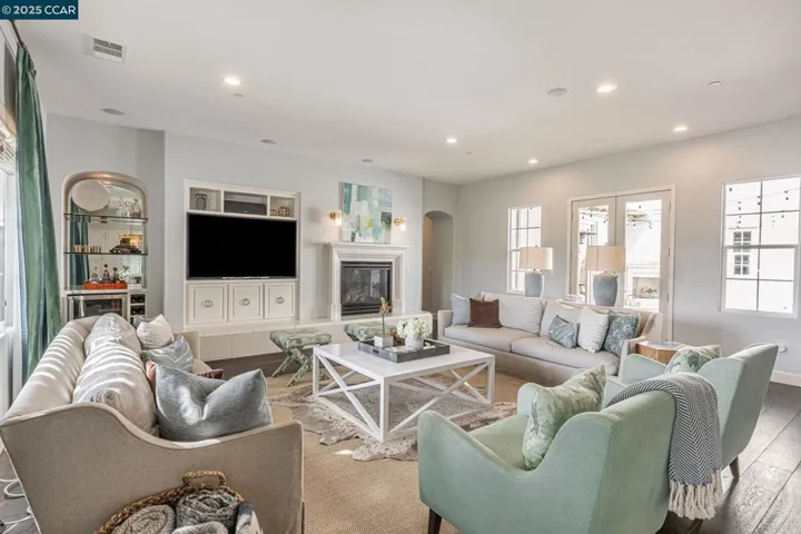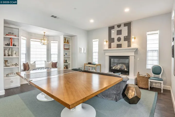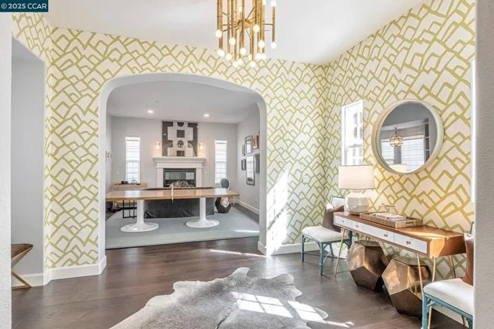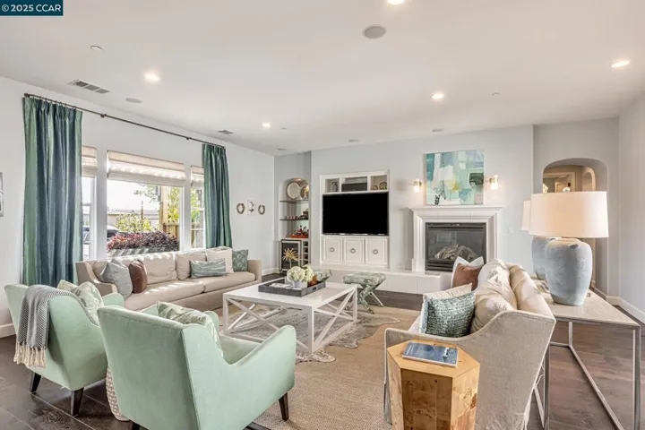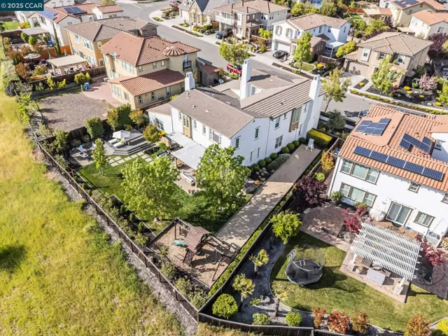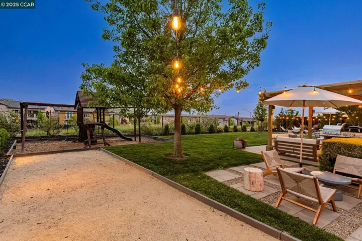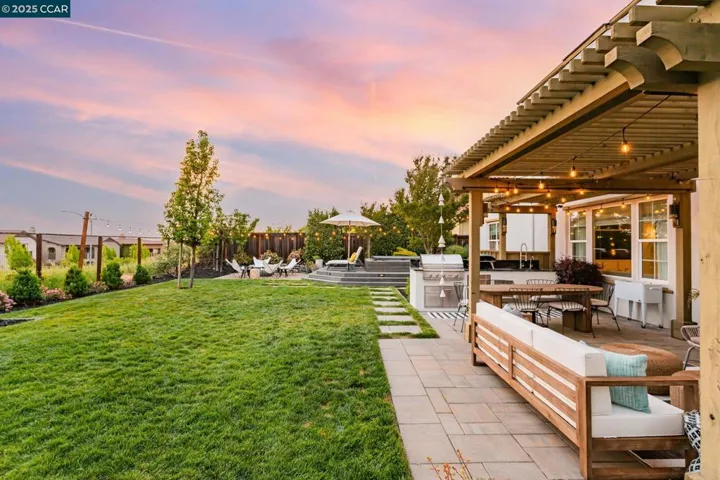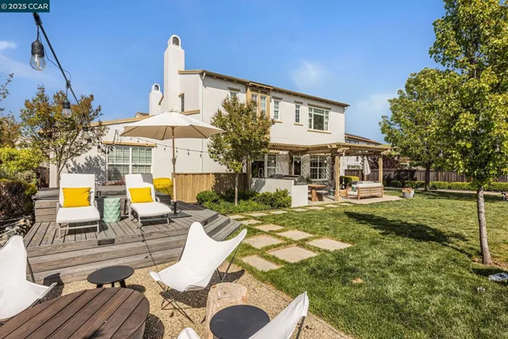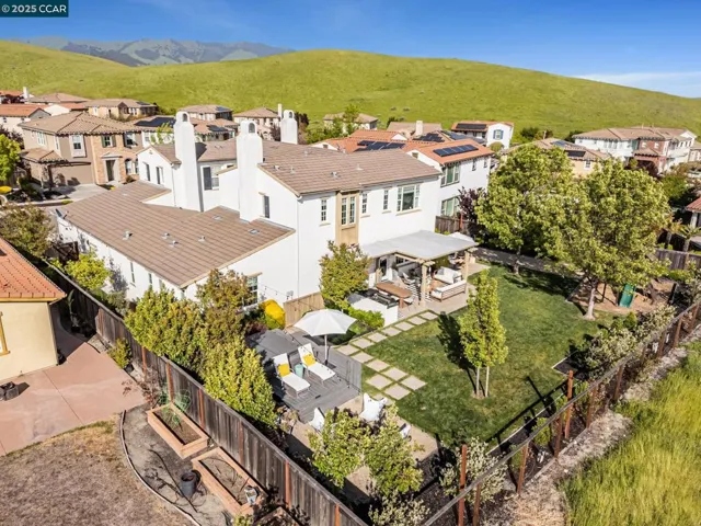 Stunning showcase home with an impressive blend of luxury & functionality, 4,255 Sq Ft of meticulously designed living space on a large 11,637 Sq Ft lot (.27 Acre) with views! Wide-plank wood floors & designer lighting featured throughout this spacious home. Versatile main floor guest wing w/option of 6th bedroom. Main level has a guest bedrm, 1.5 baths, & office w/French doors that open to a private courtyard, complete w/cozy fireplace. The heart of the home is an open concept great room, seamlessly integrating the kitchen, family rm w/ fireplace & dining areas. The kitchen boasts marble countertops & high-end SS appliances, an inviting space for both day-to-day living & entertaining. French doors lead to a charming courtyard & large backyard oasis, enhancing indoor-outdoor flow. Formal living rm has bay window, built-in cabinets & fireplace. Formal dining room for entertaining. Primary suite offers a retreat & sweeping views. Spa-like bath w/ dual sinks/vanities, dressing areas & 2 walk-in closets. Step outside to a beautifully landscaped backyard w/ tons of room for entertaining w/outdoor kitchen, bocce court, play area, expansive lawn, hot tub, fire pit, veggie garden, fruit trees & views. No rear neighbors. Walk to pool/cabana, and K to 8th grade at award winning schools!