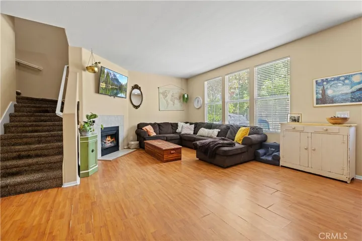 Welcome to this inviting 3 bedroom, 2.5 bath townhouse with 1,375 sq ft of comfortable living in the highly sought-after Sundance community of Santa Clarita. The entry level showcases an open floor plan with laminate flooring, a welcoming fireplace, and seamless flow into the dining and kitchen areas. The kitchen is complete with stainless steel appliances, a breakfast bar, and ample cabinetry. Upstairs, retreat to the spacious primary suite featuring mirrored closets and a private spacious bathroom. Two additional bedrooms provide versatility for family, guests, or a dedicated office. Additional highlights include a designer-inspired powder bath, natural light throughout, and a two-car garage offering secure parking and storage. Community amenities feature sparkling pools, relaxing spas, and well-kept landscaping surrounded by Mediterranean-style architecture. Ideally situated near schools, shopping, dining, and easy freeway access.