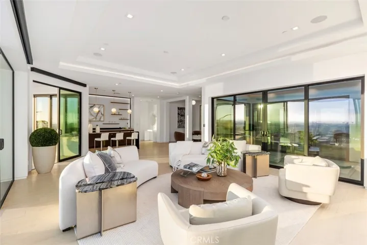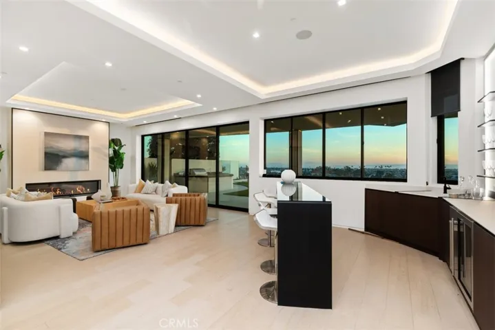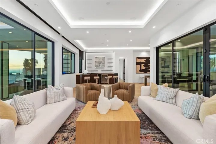 This breathtaking newly-constructed contemporary estate sits in a prime location on the front row of CDM’s Irvine Terrace directly overlooking Balboa Island with panoramic ocean views extending from Dana Point to Catalina, and Palos Verdes. With 6 beds, and 8 baths, the 7,709 sq. ft. two-level property features an open floor plan with a modern and inviting living area adjacent to a custom-built bar. The exquisite kitchen comes replete with Italian marble, custom cabinetry, a hidden butler’s pantry, and a temperature-controlled glass-enclosed wine cellar. Floor-to-ceiling windows allow abundant natural light throughout the house. The luxurious owner’s suite boasts unparalleled views, a fireplace, a spa-like bathroom, and a walk-in closet. Other high-end amenities include a screening room, game room with pool table and bar, spa/gym, Zen atrium, and more. The expansive backyard is perfect for entertaining, with a heated pool and spa, sweeping views of the Marina, outdoor kitchen/BBQ, dining area, and fire pit. Designed by renowned architect Brion Jeannette.