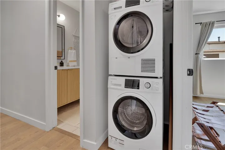 This apartment features a spacious dining area off the large kitchen, mirrored closet doors, a brand new in-unit Energy Star washer and dryer, all-new, never-used energy-efficient appliances, an abundance of natural light, and posh fixtures throughout. The bathroom has been fully renovated top to bottom with a large designer vanity, luxury tile, modern light, and bath fixtures.