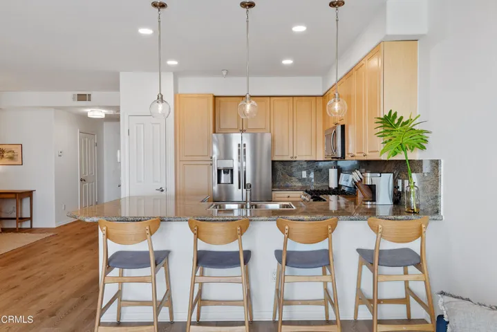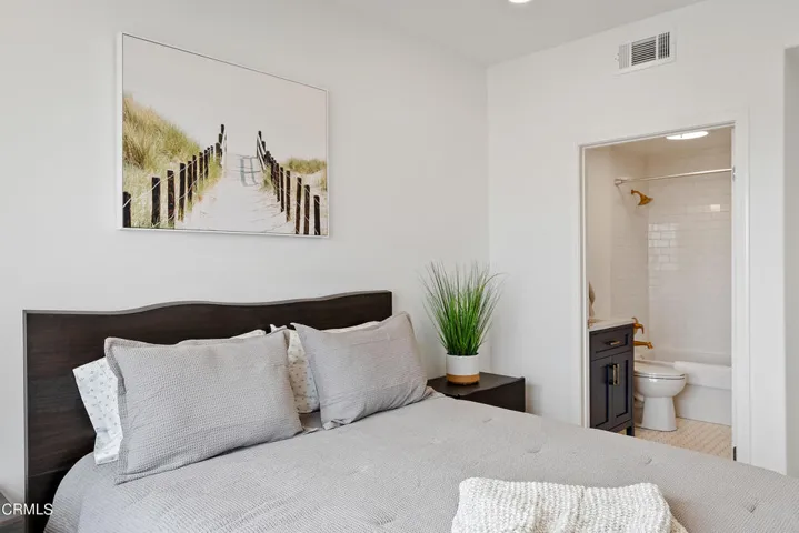** AVAILABLE November & December 2025! ** FULLY FURNISHED – MONTHLY RENTAL. 30 day minimum stay – no maximum length of stay… (Available 11/5/2025) Live in the heart of Downtown Ventura – in the ‘Poli-Oak Pavilion’! Walk to local restaurants, shopping, Farmer’s Market, San Buenaventura Mission, Ojai bike path, Ventura County Fairgrounds and to the Ventura pier and beach! This beautifully appointed ocean view condo features granite counter tops, stainless steel appliances, recently upgraded bathrooms, flooring, lighting and all new furnishings! The 2 bedroom, 2 full bathroom home has been outfitted with contemporary furniture and artful decor, and is equipped with everything you’ll need to enjoy your stay including housewares and kitchen essentials, shower and bath supplies, linens, towels and more! Miele stackable washer and dryer – in unit. Enjoy your morning coffee overlooking iconic Downtown Ventura and the Pacific Ocean or enjoy the courtyard with lush landscaping and water features that create a peaceful downtown oasis. The unit is located on the 4th level; however, it is easily accessible by elevator from the secure underground parking garage. Located across the street from the historic City Hall, this home will put you in the center of everything that’s fun and exciting in downtown Ventura, not to mention it’s just 4 blocks to the beach! All utilities included – water, sewer, trash, gas, electricity, Wi-Fi and cable TV are all part of this fully furnished monthly rental.