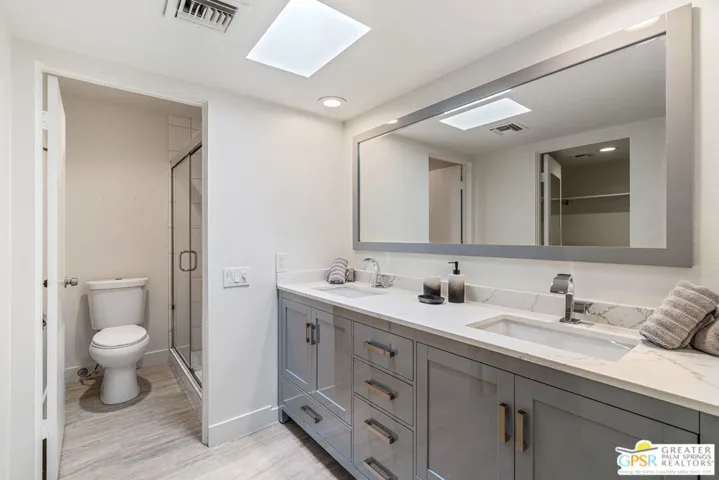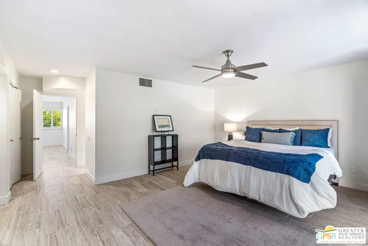 This exceptional South Palm Springs condo, DESIGNED BY RENOWNED ARCHITECT HUGH M. KAPTUR, is NOW AVAILABLE FOR LEASE and offers a seamless blend of mid-century modern design with contemporary comfort. Expansive sliders frame BREATHTAKING SAN JACINTO MOUNTAIN VIEWS, while sleek lines and sophisticated decor create a warm, inviting atmosphere. Inside, TWO PRIMARY ENSUITES provide space and privacy, one featuring a fireplace, spectacular mountain views, and a private balcony. The living area, centered around a fireplace, opens effortlessly to a LARGE PATIO OVERLOOKING THE POOL AND LUSH LANDSCAPE perfect for relaxation or entertaining. An attached garage with ample storage, in-unit laundry, and a DOWNSTAIRS BATHROOM complete with a shower enhance convenience, making this residence ideal as either a full-time retreat or seasonal getaway.Set within a gated community offering RESORT-STYLE AMENITIESincluding two POOLS, two SPAS, TENNIS COURTS, a CLUBHOUSE with a FITNESS ROOM, and citrus-lined greenbeltsthis home is just moments from the best dining, shopping, and outdoor recreation in Palm Springs. A rare opportunity to LEASE a slice of Palm Springs luxury in a prime location!