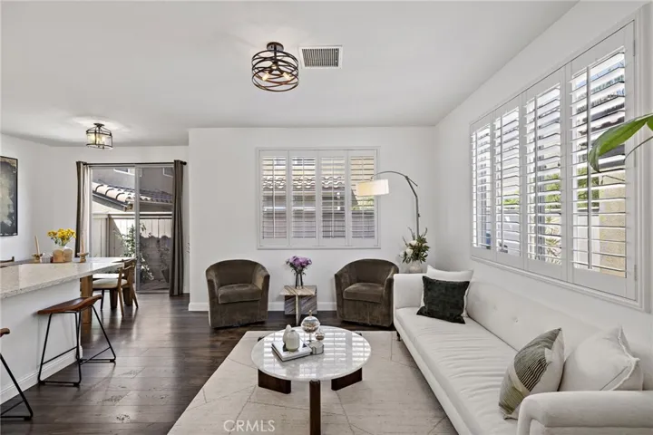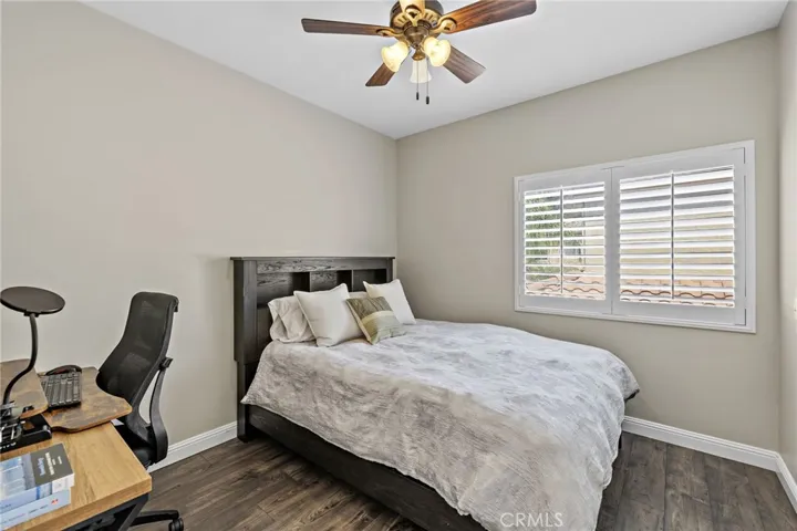 Rare DETACHED condo in the coveted Los Abanicos tract in Rancho Santa Margarita! This updated home features an open concept downstairs with living room, dining area, kitchen and a powder room. The upgraded kitchen features designer quartz countertops & subway quartz tile backsplash, Shaker custom cabinets, slow close drawers & upgraded hardware. Cooking is a pleasure with the stainless steel 5-burner gas range, microwave/hood, dishwasher & refrigerator. Luxury Pergo laminate plank flooring add to the home’s appeal while Plantation shutters are installed throughout the home. All interior doors were replaced by the previous owner w/ modern 6 panel doors. Upstairs, you’ll find a spacious primary suite with a customized walk-in closet system with built-in drawers and shelving. The en suite primary bathroom was remodeled a few years ago, with a dual sink vanity & stone shower & glass door. Two additional spacious rooms upstairs with large windows fill the rooms with natural light. The hall bathroom features a newer vanity. Outside you’ll love the private wrap-around backyard, perfect for BBQ’s or unwinding after a long day. High efficiency AC & furnace. The attached two-car garage offers storage & laundry area. Los Abanicos community is a Mediterranean inspired neighborhood located minutes from stores, restaurants, and services in the central region of Rancho Santa Margarita. Master Association amenities include swimming pools, the Beach Club, summer concerts, and access to Rancho Santa Margarita Lake. The Los Abanicos association offers a swimming pool, spa, hiking & biking trails, playground, picnic area, clubhouse, sport court, and outdoor bbq area. Conveniently located near shopping, restaurants, and RSM Central Park & Library.