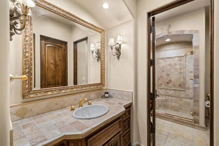 Recognized as one of the most majestic estate homes in Los Altos Hills, this property exudes European grandeur with a focus on lavish entertaining both indoors and outdoors. The propertys gated entrance and motor court create a commanding first impression with details that include carved balustrade railings, water features, and massive iron and glass front door. The homes architecturally distinct floor plan integrates the front entrance with the opulent interior living spaces, arranged around a central courtyard and leading to the beautifully landscaped grounds. An infinity-edge pool, spa, fireplace, and barbecue center set the stage for magnificent outdoor gatherings. Each room showcases meticulous craftsmanship, featuring ornate ceiling designs, plaster walls, sophisticated lighting, grand fireplaces, and custom cabinetry. The main residence has 6 bedroom suites, 2 offices, a lounge, and 8.5 baths, complemented by a 1-bedroom, 1-bath guest house. Adding to the estate’s allure are the lower level recreational room, fitness center, theater, and wine cellar, alongside an attached 6-car garage. A pinnacle of luxury and Old World sophistication, this unparalleled property offers close-in convenience and with access to excellent Los Altos schools.