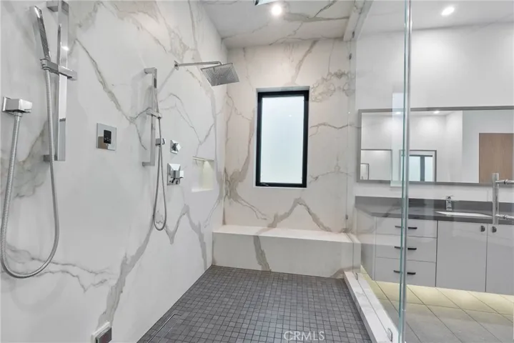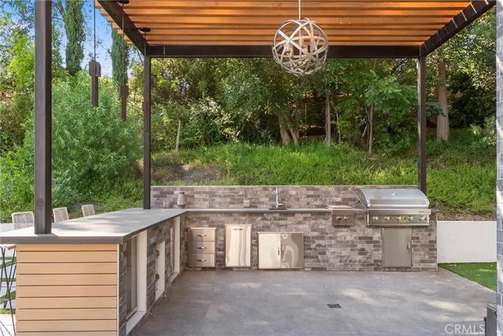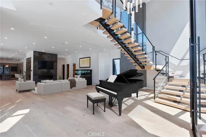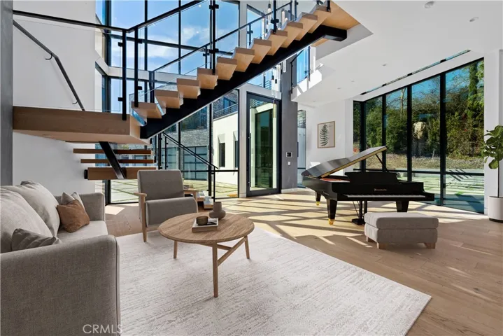 Welcome to your private sanctuary, nestled on a sprawling .68 acre wooded lot. Situated on a flag lot, this estate sits far from the street, ensuring unmatched privacy. A gated entrance and extended driveway lead to a spacious three car garage, with ample additional parking for guests. Step through the breathtaking glass entryway, where soaring 32-foot ceilings, a dramatic chandelier, and striking white oak floating stairs set the stage for this architectural masterpiece. Walls of glass and Fleetwood sliding doors seamlessly blend indoor and outdoor living, flooding the space with natural light and creating an entertainer’s dream. The open concept layout is anchored by stunning oak floors and a sophisticated Italian designed kitchen, featuring a hidden oversized pantry and a wine fridge, perfectly positioned beside an elegant formal dining area. The lower level boasts two ensuite bedrooms, a private office, and a state-of-the-art theater, ensuring ultimate comfort and convenience. Upstairs, the primary suite is a true retreat, complete with a cozy fireplace, a custom walk-in closet, and a spa inspired bath. A private sitting area and relaxation patio offer a peaceful escape. Above the garage, a versatile space awaits, ideal for a gym, studio, or guest quarters, opening onto a spacious outdoor terrace. Step outside into an entertainer’s paradise, featuring a zero edge saltwater pool and spa, a sleek cabana, a fully equipped pool house, and a basketball court. Multiple outdoor patios provide the perfect setting for dining and relaxation, while paid-for solar panels add a modern touch of efficiency. Experience the pinnacle of luxury living, where privacy, elegance, and resort style amenities come together in perfect harmony.