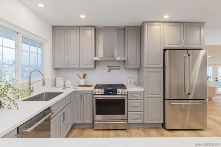 **Best Price/Sq Ft for a fully renovated home in 92106** Over 2,000 sq ft of modern living space with 3 bedrooms, 2 bath, and a large two-car garage with ADU potential. Ideally located on a corner lot along a quieter stretch of Nimitz, with quick access to Liberty Station, Sunset Cliffs, shopping, dining, and top-rated schools. Enjoy the fully permitted upgrades, including new HVAC, water heater, and upgraded electrical panel. The open dining area flows into a chef’s kitchen with quartz countertops, Café appliances, pot filler, and a custom wet bar with tap. A spacious family room with a quiet reading nook, bench seating, and multi-zone sound opens to the backyard with outdoor bar, built-in speakers, and low-maintenance green space. The primary suite features dual vanities, walk-in shower, and private toilet room. Additional highlights include a second living room, flex office/bedroom, and laundry with built-in cabinetry.
