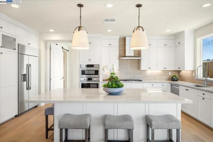 Final opportunity to own the highly sought-after Cypress Plan at Carmel Pointe in Union City. Designed with a versatile layout, private JADU suite, and first-floor primary suite. Once sold, the Cypress residences will be completely sold out. Brand New Construction, exquisite luxury living can be yours at Carmel Pointe in Union City but this is your final opportunity for a Cypress Plan residence so don’t miss out!! Ideal location uniquely situated right next to Sea Breeze Park trails and bay views yet convenient to access 1-880/Dumbarton/San Mateo Bridges. The Cypress floor plan is unique as it has the primary bedroom/bath on the first floor in addition to a JADU w/bedroom, bath, kitchenette and private entrance. Enjoy an elaborate kitchen with gourmet center island, stainless steel Bosch appliances, gas cooktop and 42” built in refrigerator. The open airy living area has a 3 panel sliding door to the rear yard. Upstairs you have a loft with wet bar, two bedrooms, bath and a den. Laundry room comes with both gas and electric dryer hookup, a full bank of cabinets and laundry sink. Expected completion January 2026. Still time to personalize and choose cabinets, countertops and flooring and make this your dream home. Sales office located at 32616 Carmel Way, Union City.