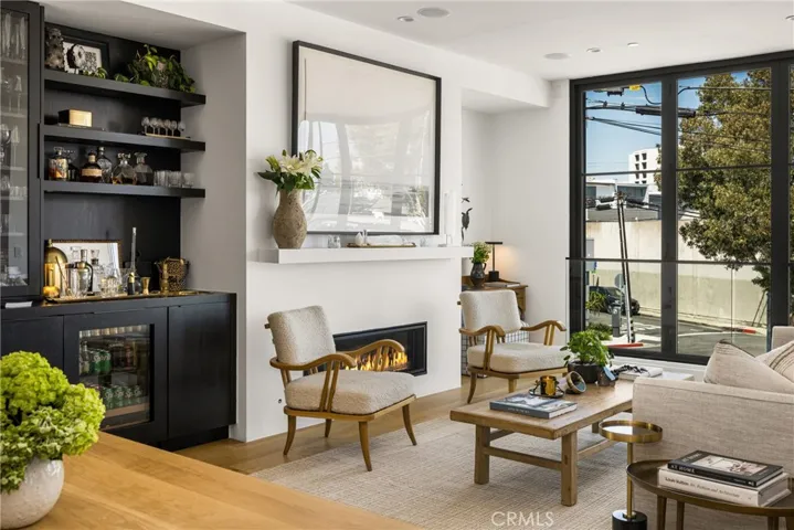 The second level showcases a chef’s kitchen anchored by Miele appliances, a La Cornue stove, Sub-Zero beverage station bar, and Ziething custom cabinets. A gorgeous Borghini Macchia Vecchia marble island with seating, butler’s pantry, custom wine cellar with built-in refrigerator, and an inviting dining area complete the space. The living room offers warmth with a fireplace, built-in bar, and access to a striking powder room. A “secret room” adds a touch of intrigue and uniqueness that’s a must-see.