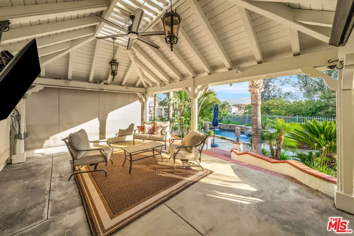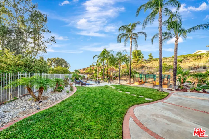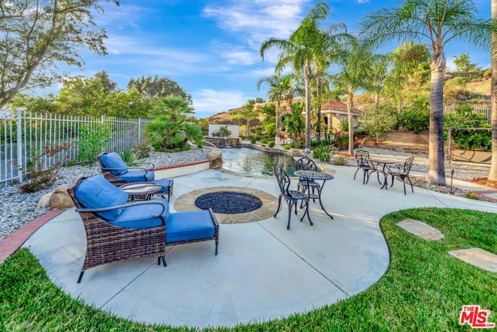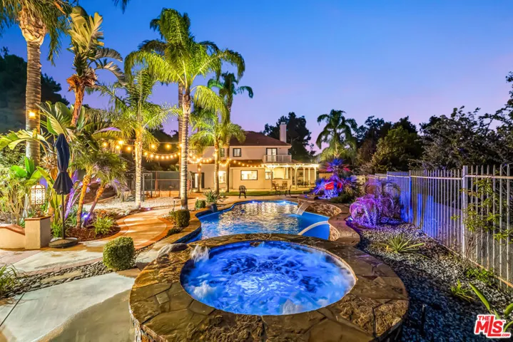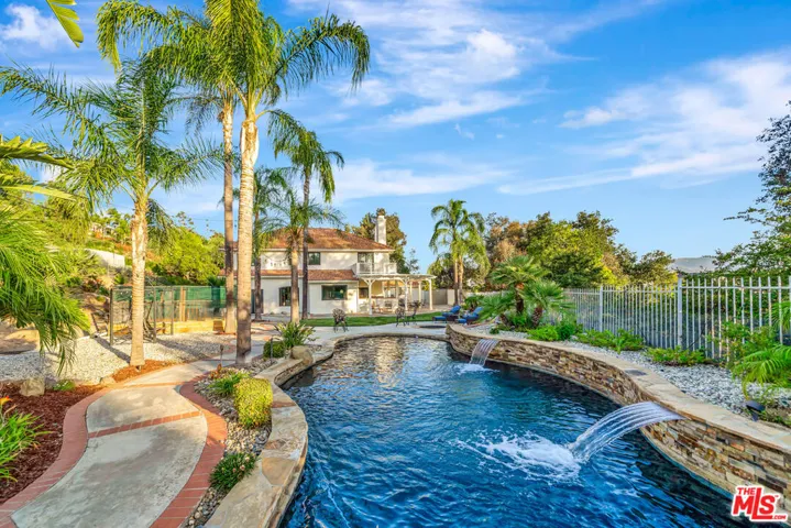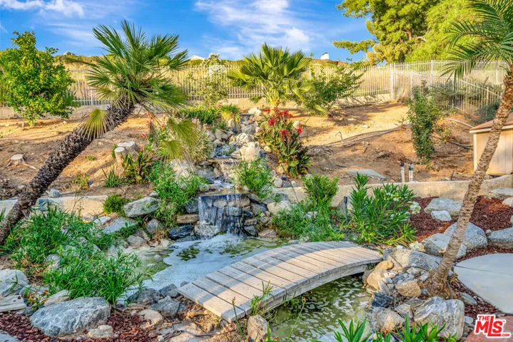 Welcome to 22239 Rolling Ridge Dr. – A Private Santa Clarita Oasis. Step into Luxury Living with this beautifully reimagined 4-bedroom, 4-bathroom estate, offering 3,579 sq. ft. of thoughtfully updated interiors and nearly half an acre of resort-style grounds. Tucked away in a sought-after Santa Clarita neighborhood, this two-story residence has been elevated with over $100,000 in designer upgrades – balancing modern sophistication with timeless comfort. The inviting double-door entry opens to a light-filled floor plan, where marble tile and engineered hardwood flooring flow seamlessly throughout. Entertain with ease in the reimagined bar area, host dinners in the elegant dining space, or unwind by one of the home’s two fireplaces. The chef’s kitchen features a striking onyx countertop, recessed lighting, and a seamless connection to the living areas, while the updated laundry room and smart home sound system bring convenience to daily life. Comfort comes standard with brand-new HVAC systems and an upgraded ducting system, ensuring year-round efficiency and peace of mind. Not to be overlooked, the garage has been transformed with epoxy flooring, new A/C, and recessed lighting – perfect for car enthusiasts, hobbyists, or those seeking a polished workspace. Upstairs, the primary suite is a true retreat with its own private balcony overlooking the lush grounds, plus a rare “His & Hers bathroom” layout designed for comfort and convenience. Generously sized secondary bedrooms offer flexibility for family, guests, or a dedicated home office. Step outside to your private resort-style backyard. A sparkling pool, filtered and chlorinated freshwater pond, and integrated WiFi receivers set the stage for both serene escapes and lively entertaining. Framed by mature landscaping and fruit trees, this half-acre property provides the perfect blend of beauty and function your own private oasis in the heart of Santa Clarita. Best of all? This home comes with no HOA fees and no Mello Roos taxes giving you the freedom to fully enjoy your home without added monthly costs. With its expansive 20,829 sq. ft. lot, modern upgrades, and unmatched indoor-outdoor lifestyle, 22239 Rolling Ridge Rd isn’t just a home – it’s a destination.