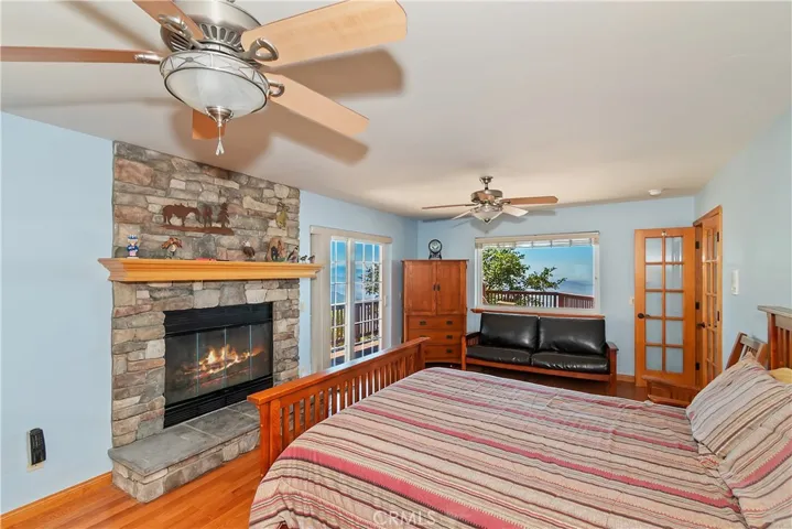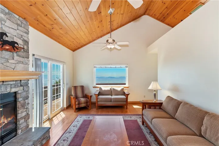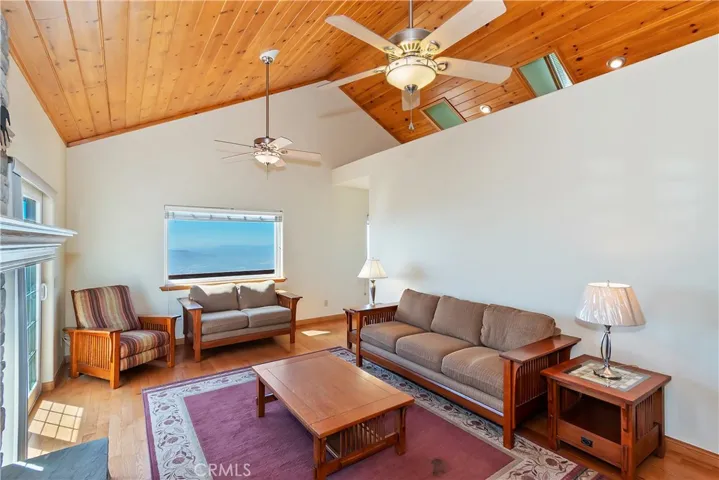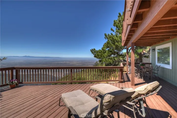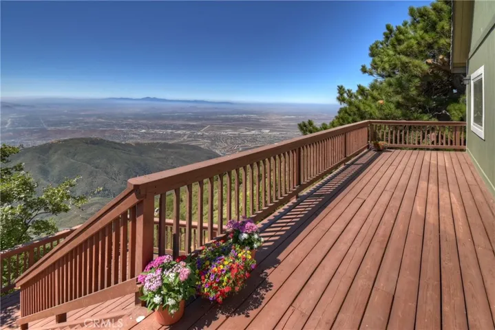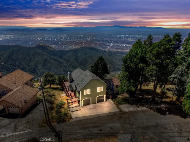 Exceptional custom built 4 bedroom, 3 bath home in the coveted Skyland area of Crestline with stunning panoramic valley, city lights and sunset views and features that truly set it apart. Perched where birds and hang gliders soar giving a daily back-drop of natural beauty. With level entry into the home and a thoughtfully designed floor plan with two bedrooms and a full bath on the main level—perfect for guests or multi-generational living. You’ll find not one, but two spacious primary ensuites, each on its own level for ultimate privacy and comfort. Each suite is accompanied by its own dedicated laundry area, with one conveniently located just outside the main master and the other next to the second suite. The interior showcases warm tongue and groove vaulted ceilings, rich wood and tile flooring, and two cozy fireplaces—one in the inviting living room and another in the lower-level primary suite. Enjoy cooking in the stylish kitchen with stainless steel appliances or relax and unwind on two expansive entertaining decks perfectly positioned to take in the jaw-dropping views. Additional amenities include central A/C, a two-car garage, tons of storage, and an extra-large build-up area—ideal for future expansion or a home workshop. Situated on a county-paved, snow-plowed, and maintained road, this home offers a serene mountain lifestyle with excellent commuter access. Don’t miss this rare opportunity to own a truly special property with some of the most stunning views in the San Bernardino Mountains. Whether you’re seeking a full-time residence or a peaceful second home, this one checks all the boxes—and then some.