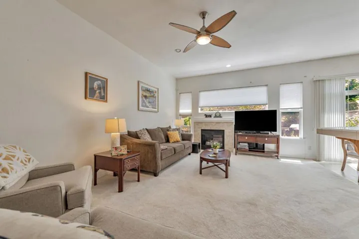 HUGE PRICE REDUCTION!!! Spectacular home built by Shea Homes in The Villages Golf & Country Club. Located in Sonata, one of the newest villages, this lovely 2 bed 2 bath home has high ceilings adding a wonderful feel to the 1,629 sf of living space. Lower HOA fees, $1329 monthly. Features a very open floorplan with natural light. You’ll love the peaceful backyard that features a pergola, rose bushes, a lemon tree, a bottle bush tree, and a shady Japanese maple tree in the patio area. Park your car in the spacious 2 car garage and walk directly into the house. You will find a large great room/living room and kitchen with plenty of space. A formal dining room and breakfast nook are also featured. The master suite is large and spacious with a fantastic walk in closet along with a separate shower and soaking tub. The 2nd bed & 2nd full bath with tub/shower, a great option for another resident, a guest room or an office. 2 car garage w/built in cabinets & the large outdoor patio area is perfect for relaxing or entertaining. The Villages offers a gated community within minutes to most Silicon Valley attractions. Features include golf/tennis/pickleball, pools & spas, trails, exercise facility, post office, library, art studio, clubs & organized activities for every interest.