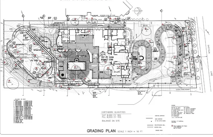 The property is currently configured with a Main House of 3720 SQ FT (Physical Measurement) on the upper level and a Guest/Pool House of 1008 SQ FT (Physical Measurement) with a Pool below. Detached 4 car garage of 1035 SQ FT (Physical Measurement). AS-IS condition. The seller will not be making any repairs. CASH buyer only. A custom mansion plan, designed by a renowned architect, was approved by the city in September 2019 (now expired) for an opulent 15,000± sq. ft. estate. The design features 9 suites, guest quarters, a sprawling 1,500± sq. ft. great room, a gym, a courtyard, pool, a tennis court and a basement garage accommodating 7+ cars.