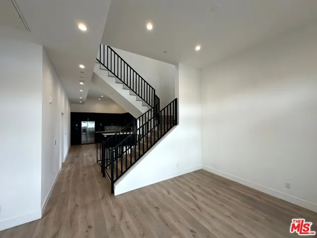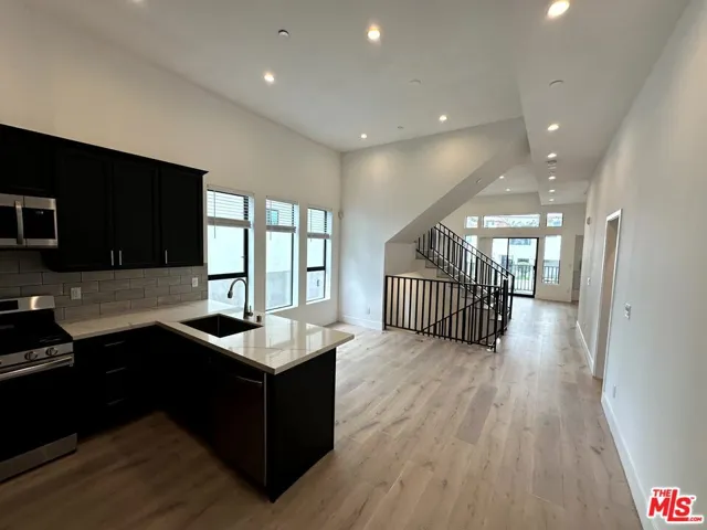 Beautiful Modern Luxury 4 Story Townhome – 3 bed – 4 bath with office/studio and Rooftop Deck in Silver Lake. Step into modern elegance with this 2021-built 4-story luxury townhome nestled in the heart of Silver Lake. This stunning triplex unit features 4 bedrooms, 4 bathrooms, and a spectacular rooftop deck, offering breathtaking views of the LA skyline and the Hollywood sign.The home welcomes you with a bright and spacious open floor plan, boasting high ceilings and luxury vinyl flooring. Each level is enhanced by recessed lighting and high-end finishes, creating an ambiance of sophisticated comfort. Balconies on each floor allow for seamless enjoyment of the vibrant city energy.The contemporary kitchen is a chef’s dream with sleek cabinetry, pristine white quartz countertops, and stainless-steel appliances. The dining area adjoins a large living room, complete with a sliding glass door that opens to the first of several balconies. The second floor houses two well-appointed bedrooms, a shared bathroom, laundry convenience with a stackable washer and dryer, and yet another balcony for private outdoor enjoyment. Ascend to the private sanctuary of the top-floor master suite, featuring a walk-in closet, an en-suite bath, and an expansive private roof deck perfect for entertaining or peaceful relaxation.The ground floor offers versatility with an additional room and en-suite bath, featuring a private entrance that can serve as a home office or guest suite.Experience the luxury of double-pane picture windows throughout, framing iconic views and flooding the space with natural light. The unit comes with two assigned parking spaces in a gated parking.Located in the desirable Silverlake area, close to Rampart Village and Echo Park, and just a short distance from downtown. Enjoy easy access to shopping, dining, and entertainment, with the convenience of the 101 freeway just moments away. This is not just a home; it’s a lifestyle for those who seek urban living with a touch of luxury.