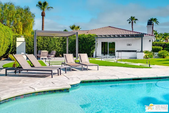 Located across the street from the coveted Rancho Laquinta, is Desert River Estates. This incredible property has been beautifully remodeled with a 4-bedroom + office, 4-bathroom home on over half an acre in Indio. Just minutes from the Polo Grounds home to Coachella and Stagecoach this property seamlessly blends modern design, high-end upgrades, and everyday comfort. Wide-plank flooring, custom carpentry, stained beams, and thoughtful architectural details create an inviting interior. The chef’s kitchen boasts quartz countertops, and brand-new appliances, while the primary suite features a spa-style bath with a freestanding tub, frameless glass shower, and a customized walk-in closet. Upgrades and systems include gas-powered kitchen, water heater, and dryer, a fully owned year-old solar system, a Flo Logic water meter to prevent flooding, and a Halo water treatment system for clean, high-quality water. A brand-new mini split in the garage adds comfort, and all HVAC systems are new. Plumbing has been updated, and pool equipment is fully replaced for reliable performance. Outdoors, the home is designed for both entertaining and family enjoyment. The re-tiled pool is accompanied by an oversized BBQ island, outdoor fireplace, sport court, tot lot, and dramatic lighting that enhances the landscaped grounds. The property offers ample space for recreation, relaxation, and social gatherings in a serene desert setting. This stylish, move-in-ready retreat combines luxury, practicality, and comfort in one of Indio’s premier gated communities. Its prime location near festivals, golf, shopping, and the best of the Coachella Valley makes Desert River Estates an unmatched opportunity to enjoy the desert lifestyle at its finest.