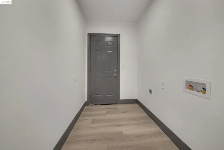 Back on the market. No fault of the property or seller. An excellent starter home for a first-time buyer. This 2bd/1ba East Oakland home has been extensively remodeled, upgraded, and updated. New laminate flooring, plumbing, electric with LED lighting, roof, central heating, and much more. The dining area and kitchen flow in an open architecture style. The kitchen has a new refrigerator, dishwasher, cabinets, stone tops, and a stainless steel sink. The bathroom has been completely remodeled with a full-sized shower and tub. There is a laundry room with a washer and a gas dryer. The property has a large electric gated area for parking up to 3 to 4 cars. This is priced to sell.