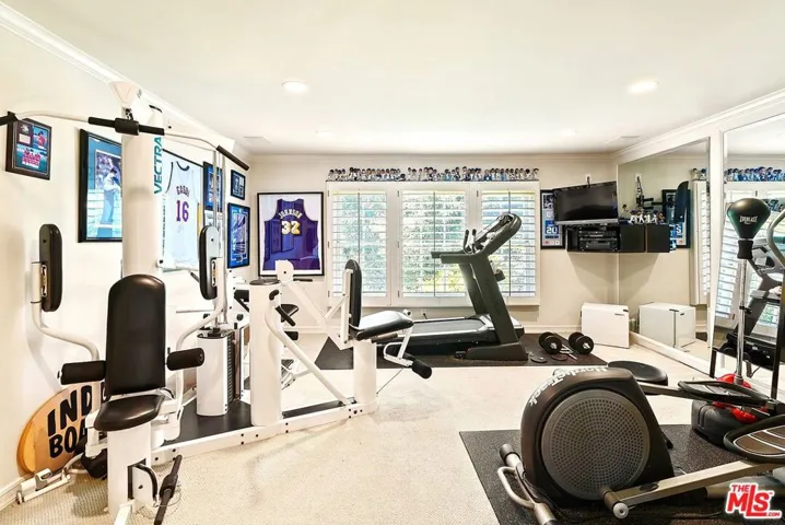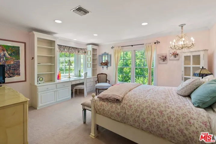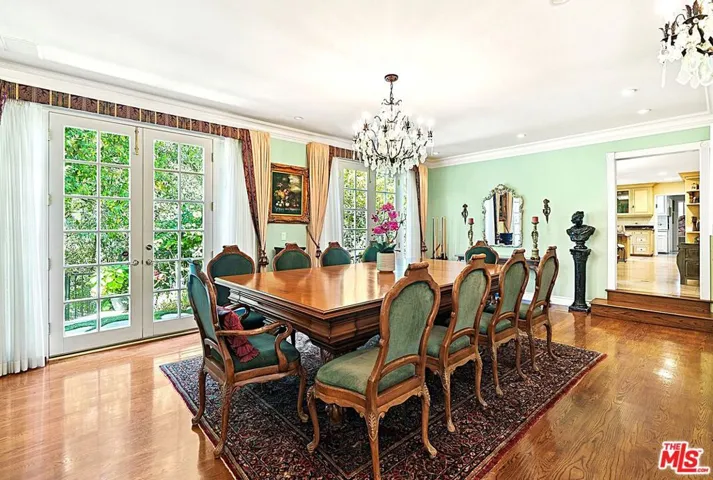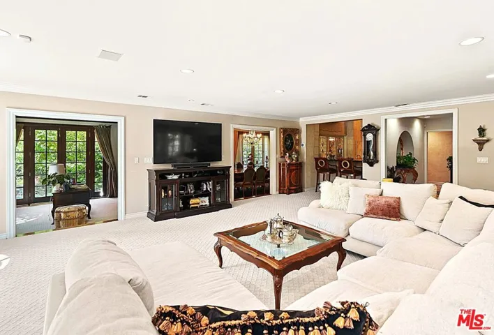 Set on nearly half an acre in a private, picturesque setting, this six-bedroom estate offers both grandeur and versatility for families seeking space, comfort, and lifestyle. Designed with a rare second-floor dual-wing layout, the residence balances expansive outdoor entertaining areas with future expansion possibilities ideal for a large or extended family.A gracious foyer with soaring ceilings and an elegant chandelier opens to a sunlit living room anchored by a full wet bar, perfect for celebrations large or small. The formal dining room sits adjacent to a chef’s kitchen, featuring an oversized stone island, expansive countertops, dual workstations, a six-burner cooktop, two sets of double ovens, and two dishwashers more than ample to make both weekday dinners and gala soires a breeze. An executive den with built-in wood cabinetry offers canyon and mountain views, providing the perfect perch for work or contemplation.The grand staircase leads to a vaulted second-story foyer, flanked by a three-bedroom wing with en-suite baths, built-ins, and a shared lounge area. Dividing the space is an upstairs gym with a sauna, while the other wing accesses the theatre like media room and the primary suite. The master suite features a sitting area, the master bedroom has vaulted ceilings and an expensive view, wood-burning fireplace, balcony access through French doors, and a spa-inspired bathroom with a jetted tub, rain steam shower with seating, dual vanities, and dual closets comfort, privacy, and indulgence all in one.The grounds are equally impressive, with a resort-style pool and spa framed by natural stone, a sport court, multiple terraces for entertaining, a built-in barbecue, and lush, mature landscaping ensuring privacy. Beyond the sports court, an additional expanse of land invites future enhancements a guest house, expanded terraces, or even a second residence. This beloved estate has been the backdrop for years of memorable gatherings and cherished family life. Now it awaits its next chapter. With a fresh designer’s eye, updated colors, and modern textures reflecting today’s palette, this home offers an extraordinary opportunity to reimagine its grand spaces while preserving the scale, amenities, and character that make it truly remarkable.