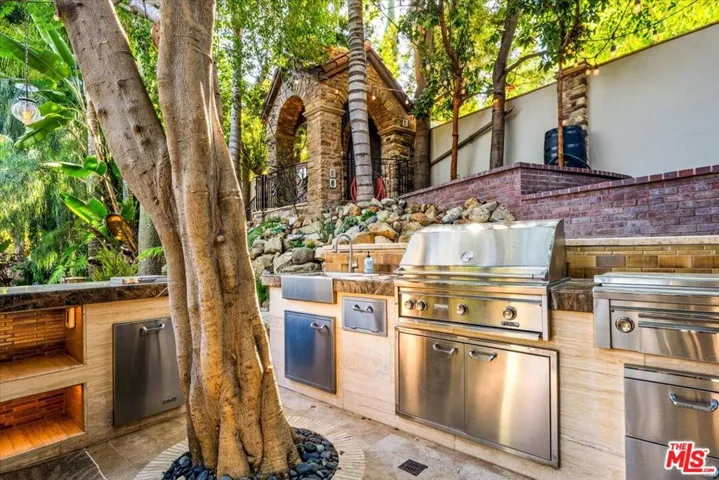 CASA LA GRANADA: Iconic Spanish Colonial Revival Estate in Hollywood Dell Discover the epitome of luxury living at CASA LA GRANADA. Nestled behind private gates in the highly sought-after Hollywood Dell neighborhood of the Hollywood Hills. Set on a generous 9,249 sq. ft. lot, this meticulously preserved 1923 masterpiece blends old Hollywood glamour with modern sophistication, offering unmatched privacy, prestige, and an illustrious Hollywood pedigree – previously home to legends like John Paul Getty III and Richard Simmons. This exceptional 4-bedroom, 3-bathroom, 2,415 sq. ft. gated estate is complete with a swimmer’s pool featuring a wave generator, a standing-sized spa, and a detached 2-car garage with private alley access. The designer chef’s kitchen is outfitted with Thermador Professional stainless steel appliances and sleek stone countertops. Throughout the home, you’ll find historic architectural details that preserve the charm and integrity of the original design. Step through the grand entry and ascend a dramatic staircase, passing lush landscaping and a sparkling front-facing pool, perfect for entertaining or relaxing in total seclusion. The sun-drenched living room boasts soaring coved ceilings, original floor-to-ceiling windows, and a stunning tiled fireplace, all of which create an inviting ambiance for gatherings. Host unforgettable dinner parties in the formal dining room, seamlessly connected to the pool area for effortless indoor-outdoor living — an entertainer’s dream. The fully renovated chef’s kitchen boasts high-end stainless steel appliances, bar seating, and a stylish coffee bar, ideal for both everyday living and entertaining. The flexible floor plan includes a spacious main-level guest suite, a designer bathroom, and a separate office framed by vintage windows ideal for today’s work-from-home lifestyle. Upstairs, the primary suite offers a private elevator to the ground floor, while a guest bedroom opens to a private rooftop deck with breathtaking views. Throughout the home, authentic period details shine. Hardwood floors, plaster walls, handcrafted doors and windows, and a classic tiled roof all speak to the elegance of true 1920s craftsmanship. Outdoors, enjoy California living at its finest with an entertainer’s outdoor kitchen, mature landscaping, a fenced-in yard, and multiple serene lounging areas perfect for alfresco dining and relaxation. Located minutes from Lake Hollywood hiking trails, Beachwood Canyon, Franklin Village, world-class studios, Downtown LA, and the San Fernando Valley, CASA LA GRANADA offers the ultimate Hollywood Hills lifestyle in one of Los Angeles’ most coveted and exclusive neighborhoods. Don’t miss this rare opportunity to own a true piece of Hollywood history. A timeless estate that combines classic Spanish architecture with contemporary luxury. Schedule your private showing today and experience the magic of CASA LA GRANADA.