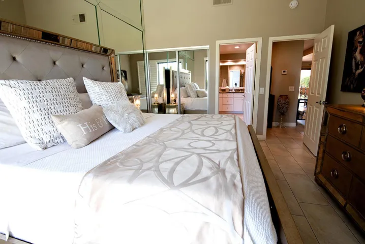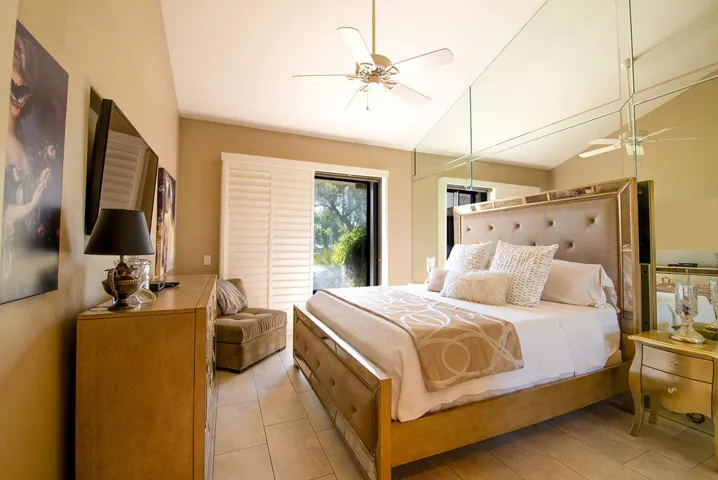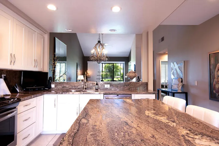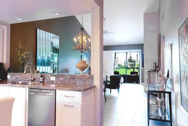 Is it possible to be too gorgeous? Once you walk into this elegantly remodeled condo on the Palm Valley Country Club Challenge Course, you will think you have stepped into a luxury 5-star hotel. A 2 Bedroom, 2 Bath open concept design, it is made for entertaining in style. Upscale appliances, granite counters and porcelain tile throughout. Relax on the back patio and enjoy the greenery of the golf course. Start the barbecue in the enclosed courtyard. On a cool evening, start up the firepit and enjoy the moonlit skies, or stay cozy inside with the living room fireplace and extra large-screen TV. The sparkling pool is just steps away for your morning swim. Palm Valley Country Club has 2 beautiful golf courses, 12 tennis courts and 12 pickleball courts. The 100,000 SF Clubhouse is one of the largest in the country,with a large dining room, grill and bar, Fitness Center with machines, free weights, a Spa, and more. A casual cafe serves beakfast and lunch. PVCC has a very active social calendar including entertainment and dancing in the Sunset Grill. For a little tidbit: This condo was owned by a Hollywood Glam Girl before selling to the current owners. She loved the location because she could zip in and out of the back gate. Move in and plan to have a good time! Just bring your toothbrush!