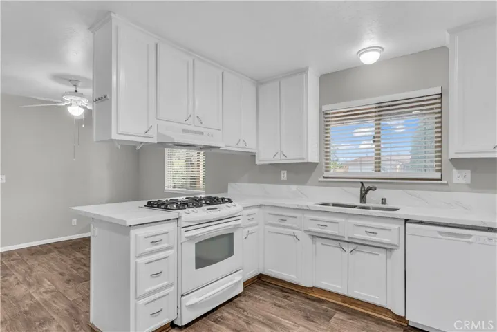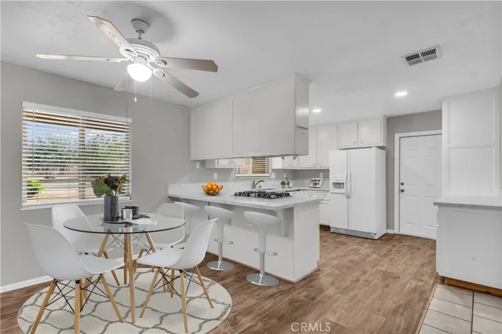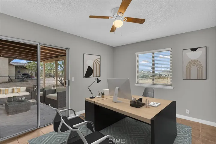 Very nice home, in a great Hesperia neighborhood. 3 ample bedrooms, 2 nice baths, 1,377 square feet. 4th “bonus” room could be an additional bedroom/office/den etc. The home is nicely refreshed with new paint, some flooring, countertops, appliances, etc. so this house is VERY ready for you to move in! Huge 19,000 square foot lot, low-maintenance, nice DG, and attractive landscaping. 2 car garage, attached. Nice open floor plan, kitchen and dining room open to pleasant living room, with fireplace. Central heat, and vented swamp cooling. Kitchen is refreshed, with new countertops, paint, floor, and quality newer appliances. Both bathrooms have been refreshed as well, with counters, paint, etc. Tile floors throughout home, for cool living. Covered patio area in back, great for evening dining or relaxing in the shade. Big 2-car garage with laundry hookups, and direct access to kitchen. A great location in Hesperia, in a quiet neighborhood. Come make this lovely home your own!