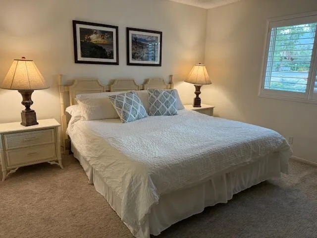 Charming three bedroom/two bath seasonal getaway. Available for NOVEMBER AND DECEMBER 2025 only. This is an upstairs end unit with outside entrance. Turnkey furnished and very cozy. Large sun deck to enjoy the beautiful evenings. Washer/Dryer inside. Two covered parking spaces. Small dog allowed with owner approval and pet deposit. Everything you need for an enjoyable stay. This is an active tennis community with Tennis and Pickleball pros and programs, (12) pools/spas, clubhouse w/gym, Bocce Ball, Bridge, and putting and chipping green. Short distance from El Paseo, restaurants, shopping, and McCallum theatre. Great location.