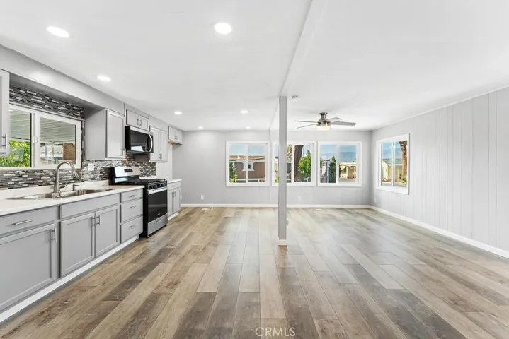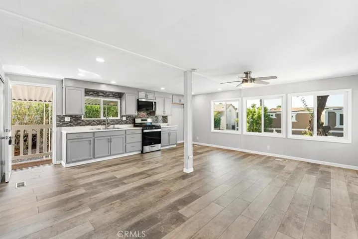 Welcome to your newly renovated oasis, a stunning mobile home that redefines modern living and invites you to step into a world of comfort and creativity! This beautifully crafted 2-bedroom, 2-bath gem boasts a brand-new kitchen that’s a chef’s dream, featuring sleek stone countertops and chic cabinetry that perfectly marries style with functionality. The new kitchen dazzles with a new whirlpool microwave, stove, and functional hardware that’ll inspire culinary delights, while the reglazed tub and new bathroom vanities and bathroom lighting add a touch of elegance to your daily routine. The open layout flows seamlessly, enhanced by a vibrant color palette that radiates cool vibes throughout. With new dual-pane windows bathing every corner in natural light, you’ll bask in the warmth and brightness of your surroundings. Discover luxurious upgrades, including new electrical outlets and switches, and convenient ceiling fans to keep you cool. Experience the ease of new laminate flooring complemented by white baseboard throughout. Every detail of this home has been meticulously crafted, from the new exterior paint and trim to the stylish awnings and refreshed stairs with outdoor carpet, creating a delightful first impression. Enjoy the benefits of a new central AC condenser and coil with a generous 10-year manufacturer warranty, ensuring your comfort year-round. The new landscaping invites you to embrace outdoor living, making this mobile home not just a place to live, but a lifestyle of harmony and convenience. Nestled in an all-age park with affordable space rent, your new community offers a sparkling pool—an ideal retreat for sun-soaked days. Don’t miss the chance to make this beautifully revamped space your very own sanctuary!