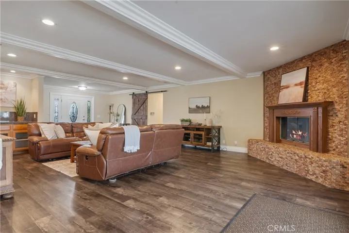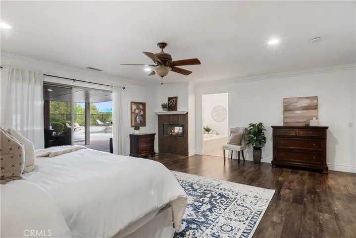 Located in the heart of Temecula Wine Country, this private, gated single-story estate offers 4 bedrooms, 3 bathrooms, and over 3,200 sq. ft. of living space on an expansive 87,991 sq. ft. lot—ideal for a future ADU. Interior highlights include wood and stone flooring, crown molding, and a stacked-stone fireplace. The gourmet kitchen features granite counters, stainless steel appliances, and a center island that opens to the family room and breakfast nook. A formal living room with balcony access provides an inviting space for entertaining or enjoying morning views of hot air balloons. There are two fireplaces: one in the living room and one in the primary suite, uniquely positioned between the bedroom and bathtub—creating the perfect ambiance while soaking in the tub. The primary suite also offers a bath, walk-in closet, and patio access. Secondary bedrooms are generously sized, with two sharing a Jack-and-Jill bathroom. A versatile bonus room provides the ideal space for a home office, gym, or playroom. The backyard is designed for resort-style living with a sparkling pool, full-length covered patio, and elevated sun deck with panoramic views. The property also includes fruit trees, RV parking, western-style outbuildings, and fully paid-for solar panels for energy efficiency and cost savings.