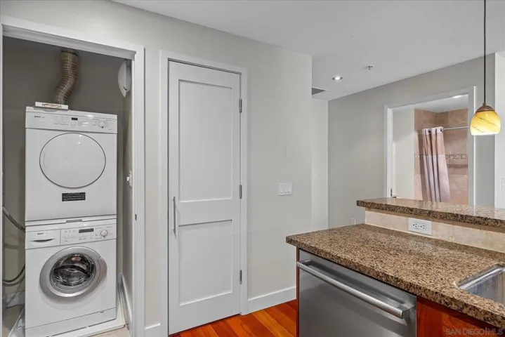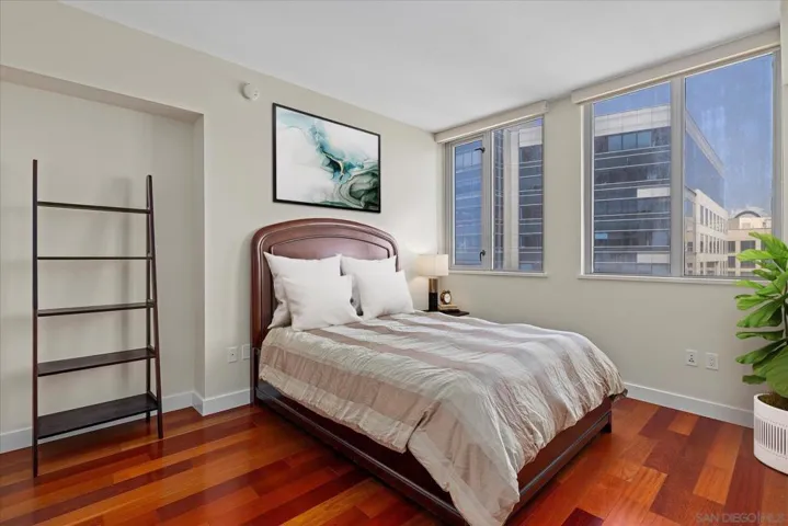 Welcome to Electra, Downtown San Diego’s tallest residential tower, where luxury living meets breathtaking views. This stunning 25th-floor residence offers panoramic vistas of the city skyline, San Diego bay and Coronado bridge through expansive windows that fill the home with natural light. The open-concept floor plan features 2 spacious separated bedrooms, 2 full bathrooms, and a large balcony perfect for enjoying the panoramic views. The gourmet kitchen is appointed with stainless steel appliances, granite countertops, and custom cabinetry, seamlessly flowing into the dining and living areas for effortless entertaining. This residence has its own washer and dryer, reverse osmosis water system in the kitchen and one reserved parking space. Available partially furnished with one bed, dining table with 2 chairs and TV with cabinet underneath the TV. This residence is very private with no other condos looking in on you. Electra by Bosa Development has resort style amenities including downtown’s largest entertainment room, pool, hot tub, fitness center, dry sauna, steam room, picnic area, fire pit and two commercial BBQs. Add an extra dose of luxury to your life and come see the possibilities Electra can offer you. Electra is downtown’s tallest residential tower. Located in the heart of the Columbia District, you’re steps from the waterfront, Little Italy, Seaport Village, and the Rady Shell outdoor concert venue, with easy access to trolley lines and the airport. Experience the pinnacle of downtown living in one of San Diego’s most prestigious high-rises.