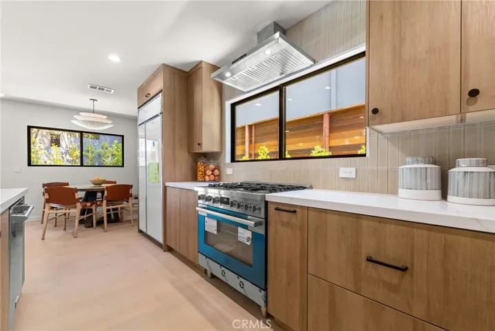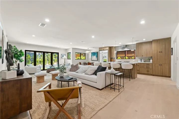 Hidden on a quiet tree-lined street in Mar Vista Hill, this home has been fully ground-up renovated with exceptional attention to detail, almost like a new construction. Crafted with high-quality finishes, it features quartz countertops, white oak wood cabinetry, and modern design elements throughout. The spacious layout includes a living room that opens seamlessly to the formal dining area, and a modern open-concept kitchen with a breakfast nook that overlooks the large family room with sliding doors to the backyard. The home offers four spacious bedrooms and a versatile den with a cozy fireplace, ideal for relaxing or entertaining. Step outside to a perfect private green backyard, ideal for outdoor living and gatherings. The main level also hosts two bathrooms. Upstairs, you’ll find a luxurious primary suite—private and tranquil, equipped with a full bathroom and a rooftop deck. The location offers a true suburban feel while providing convenient access to Santa Monica and the rest of LA.