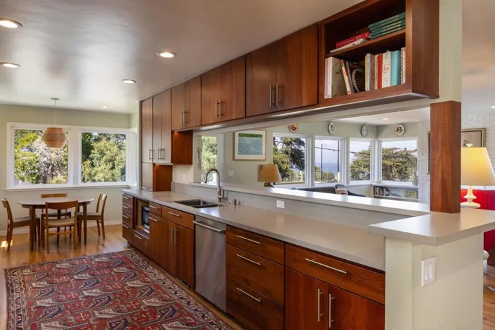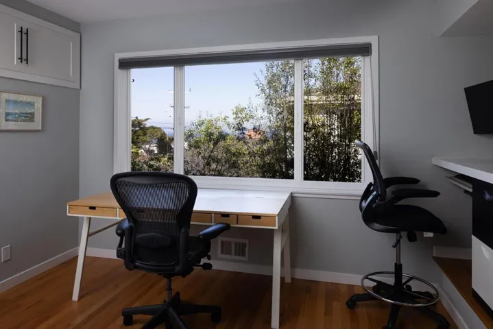 Enjoy dynamic Monterey Bay and golf course views from your living room, kitchen, breakfast nook, enlarged front deck, and flex room – perfect for a home office, art studio, or workout space! This thoughtfully remodeled home features an open floor plan with 900 sq ft of smart additions. The primary bedroom and bath were remodeled and include two walk-in closets. Family Room off Dining offers access to the sunny 2nd floor deck. The lower level offers two guest beds and full bath along with oversized laundry room and hobby room. Gather friends on the lower-level entertainment patio with TV and BBQ area off the expansive yard! Or unwind around the front yard fire pit with those same incredible views. The garage workshop has been reimagined to include a perfect retreat space plus the added motorcycle or bike garage provides excellent storage. Downtown shopping and restaurants are an easy half mile walk. This home seamlessly blends location, comfort, functionality, and views!