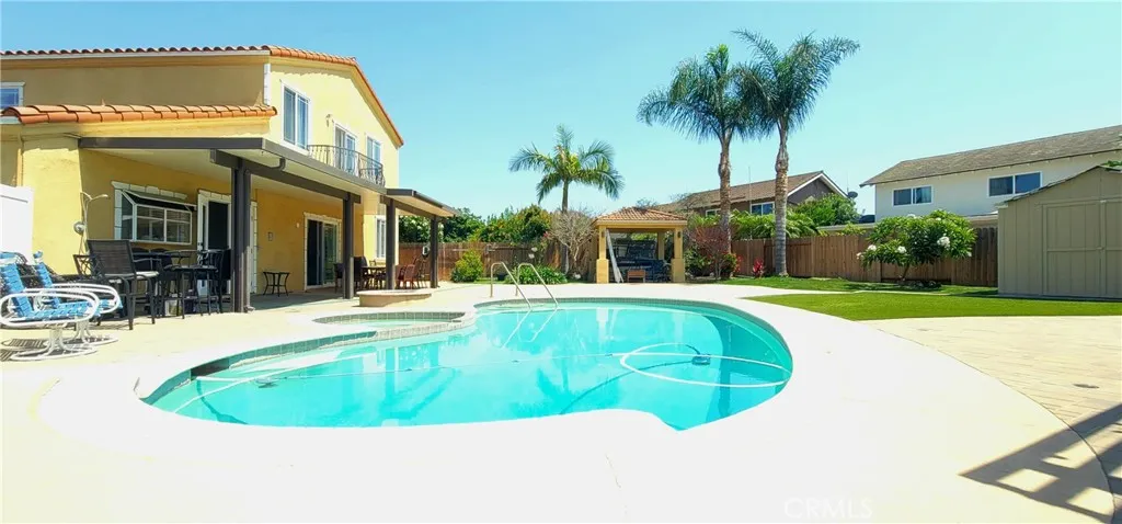 Two gorgeous houses on a big lot in the prestigious Green Valley neighborhood. Each house has their own address and utilities. The main house has 4 bedrooms and 3 bathrooms,3,569 square footage;an office,separate laundry room. A bright nice kitchen with the counter island. High ceiling with skylines to bright up in the living room,second floor and kitchen. The beautiful staircase take you to the second floor;A huge primary bedrooms has walk-in closet and balcony looks over the pool. An extra bonus room could be use as an office,it used to be a laundry for second floor. Huge backyard has pool,spa and gazebo for your entertainment and potential for another ADU. The second house was completed in 2018 and the living approximately 1,200 sqft. It has two bedrooms and two bathrooms,a 2 car garage and RV parking. It is currently a rental unit. The solar system was installed few years ago. The HOA has pools and very low HOA. Close to Schools, Church,Restaurants,Shopping center, Markets, 405 FWY. It is rare for two houses on a big lot in Fountain Valley.