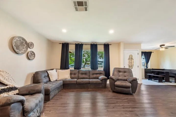 Beautifully updated 5-bedroom, 2-bath home in the heart of Banning! This spacious 1,740 sq ft residence offers comfort, style, and energy efficiency. With solar panels that will be paid off through escrow, you’ll enjoy lower utility bills from day one. Over the past five years, this home has seen major upgrades including a new roof, HVAC system, and dual-pane windows. The kitchen and bathrooms have been tastefully remodeled, featuring modern finishes and fixtures. Laminate flooring, installed just a year ago, adds warmth and durability throughout the home, and a brand-new dishwasher (only one month old) makes daily chores a breeze. You’ll love the ceiling fans in every room, keeping the home cool and comfortable year-round. Located directly across from a preschool, this property is ideal for families or those seeking a convenient location. Step into the backyard with endless possibilities—whether you envision a lush garden, sparkling pool, or a future ADU, the space is ready for your imagination.