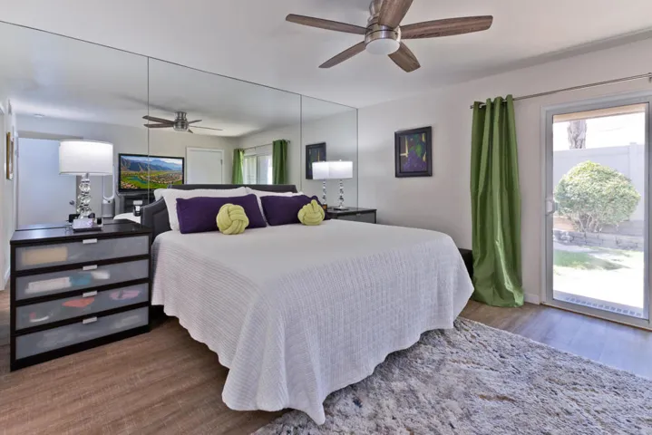 New Competitive Pricing. Presenting 1221 Sunflower Lane. A Light-Filled Retreat with Expansive Private Garden in a Resort-Style Community. This beautifully updated 2-bedroom, 2-bath home welcomes you through a frosted glass entry door, filling the living space with natural light. The freshly updated kitchen features bright white cabinetry, solid surface countertops, a stunning tiled backsplash, and a convenient pantry. The primary suite is a true retreat with garden access, a newly redone bath boasting a gorgeous tiled shower, and a large walk-in closet. The hallway to the bedrooms is lined with custom built-in cabinets, offering abundant storage. Sliding glass doors in the living area open to an expansive private patio and an oversized wraparound garden, where you’ll find prize-winning roses, newly planted trees, built-in seating, and a covered patio for year-round enjoyment. A private gate provides direct access to a path leading to the nearest pool and spa. Additional features include indoor laundry area with side-by-side washer & dryer, spacious second bedroom and bath for guests, private single car garage, and fresh landscaping with multiple outdoor living spaces. Beyond the home, enjoy a vibrant community lifestyle with 8 sparkling pools and spas, both pickleball and tennis courts, basketball courts, a putting green, and a pet area — all just steps away. This home offers the perfect balance of comfort, charm, and resort-style living–ready for you to move right in.