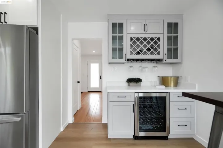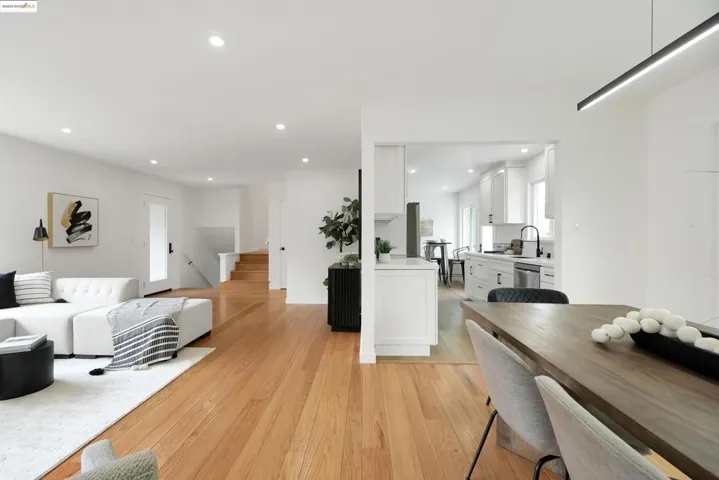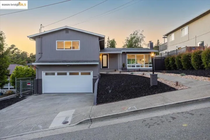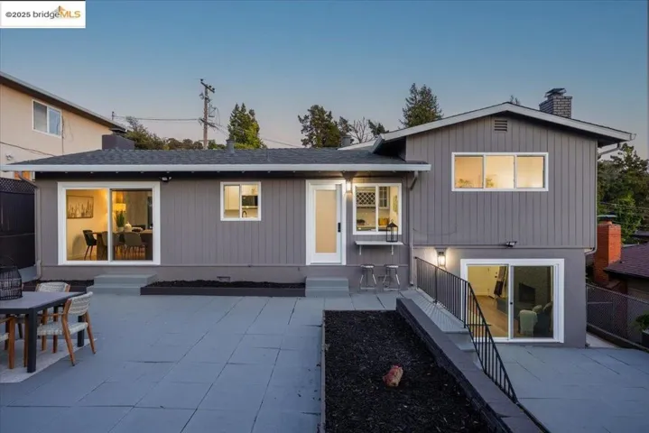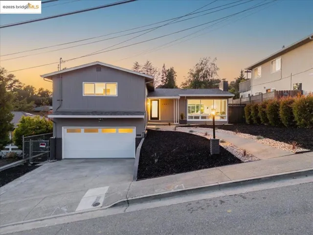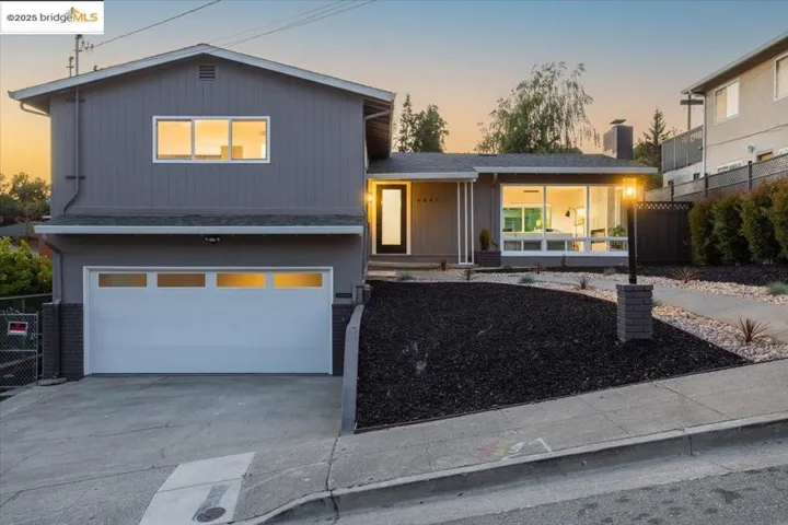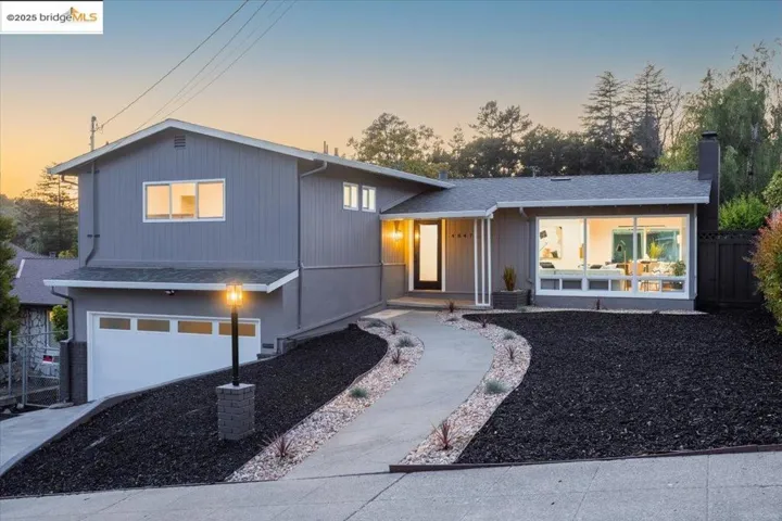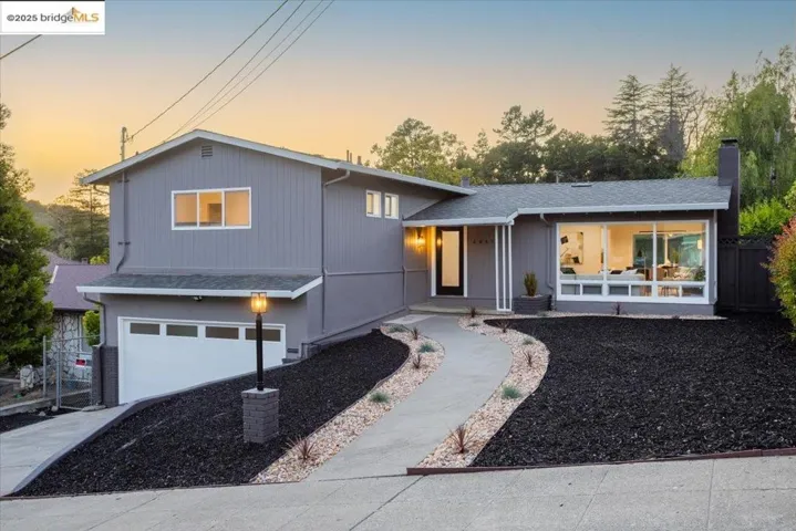 Discover peaceful hillside living in Oakland with this beautifully updated split-level residence featuring 4 bedrooms, 2.5 baths, and 1,922 sq ft of thoughtfully designed space on a spacious 6,000 sq ft lot. The charming exterior invites you inside to a bright living room illuminated by a large picture window and warmed by a cozy fireplace. Perfectly balanced for both daily life and entertaining, the open floor plan connects seamlessly to the backyard from the living and dining areas. The contemporary kitchen shines with a sun-drenched breakfast nook, wine bar, and effortless patio access. Upstairs, the tranquil primary suite offers a private bath, while three additional bedrooms and a hall bath complete the level. Downstairs, a versatile bonus room—ideal as a fifth bedroom or media lounge—features its own fireplace, half bath, and laundry area. Outside, the landscaped backyard creates an inviting space for outdoor meals or relaxing weekends. A broad driveway and attached garage provide convenience for everyday routines. Just minutes from Highways 580/13, the Oakland Zoo, and top East Bay parks and trails, this home perfectly blends serene hillside charm with modern accessibility.