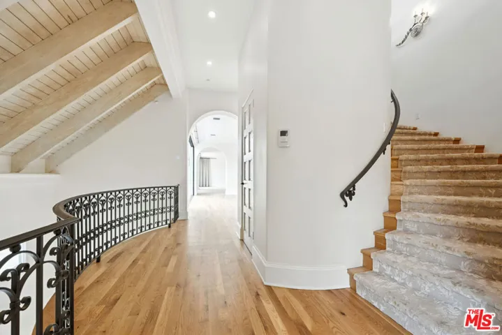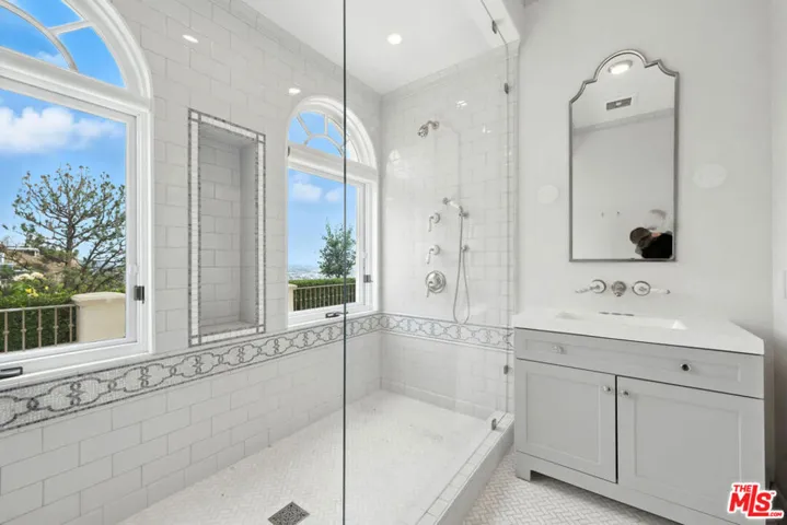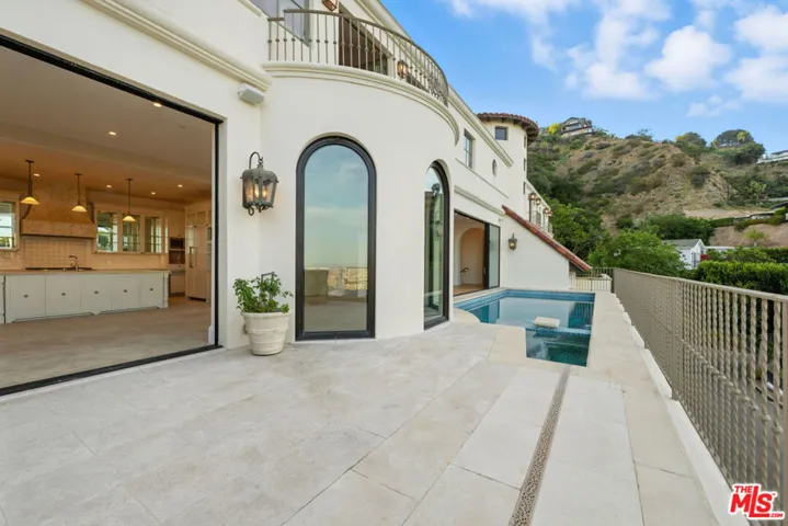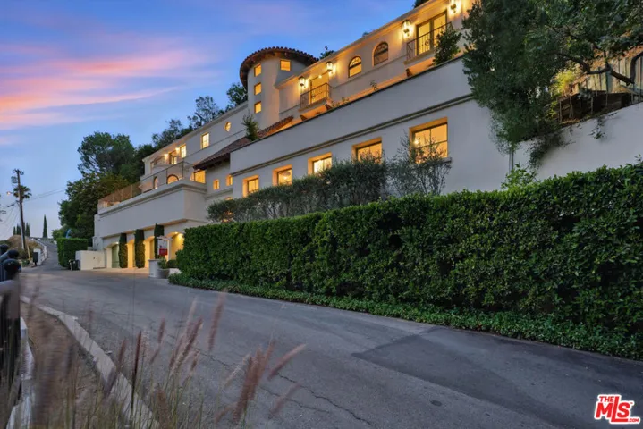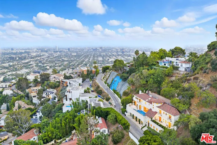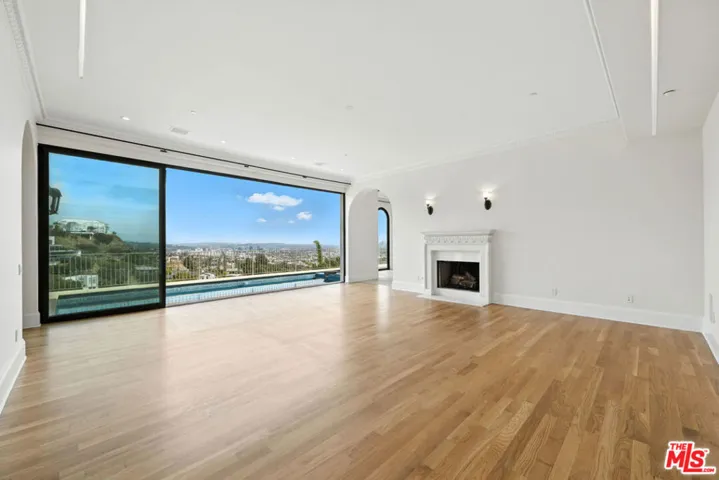 Set above the Chateau Marmont on a quiet cul-de-sac, this 6,687 square foot estate delivers scale, privacy, and unobstructed city views rarely found at this price. A dramatic two-story entry and sweeping staircase introduce the home, with an elevator connecting all three levels for seamless living. Twelve-foot ceilings, Euroline doors, and expansive glass frame panoramic vistas from nearly every room and open to multiple terraces and a mosaic-tiled pool and spa.The main level includes a large living room with terrace access, a formal dining area, and a chef’s kitchen outfitted with Sub-Zero, Thermador, and Miele appliances. Upstairs, the primary suite offers 16-foot ceilings, a fireplace, steam shower, soaking tub, sauna, dual closets, and two private terraces positioned for sunrise and sunset views. Three additional en-suite bedrooms complete the floor.Additional features include a media room, office with its own terrace, interior laundry room, a tranquil garden with mature lemon trees, and a four-car garage with additional parking. Minutes from the Sunset Strip yet completely private, this home combines space, scale, and views in one of the most coveted pockets above West Hollywood. Flexible leasing terms.